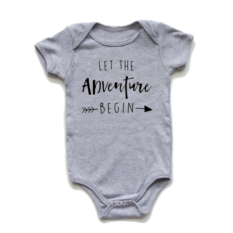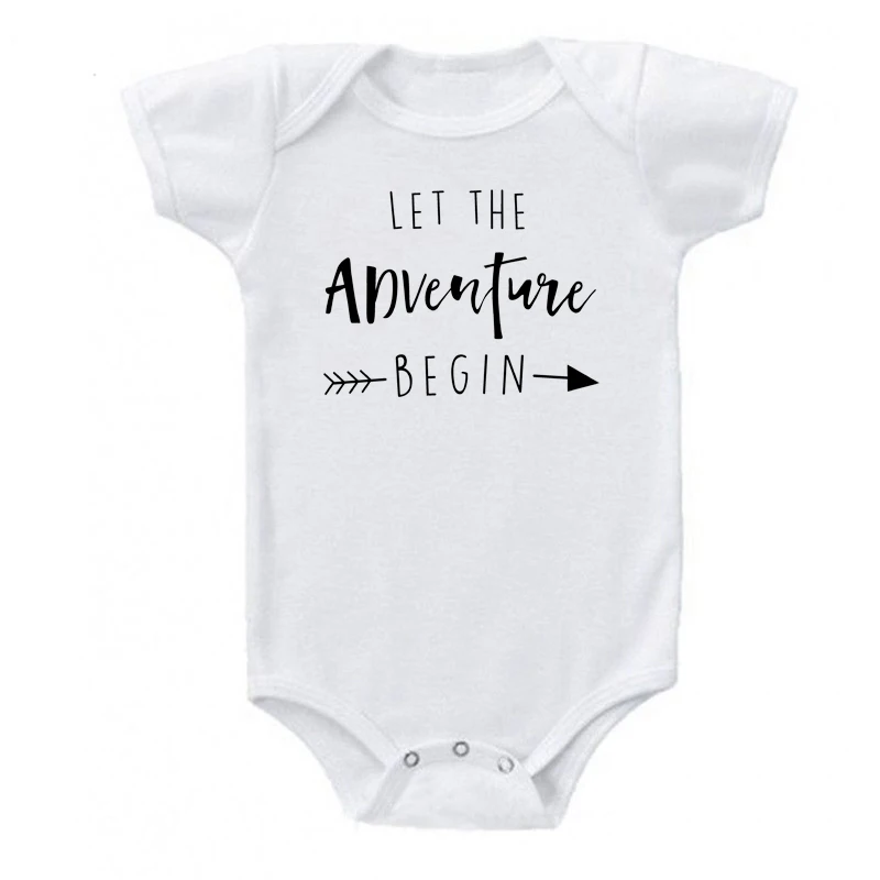Одежда для новорожденных; Одежда с короткими рукавами для девочек и мальчиков; Хлопковый костюм с надписью Let The Adventure Begin; Белый детский комбинезон