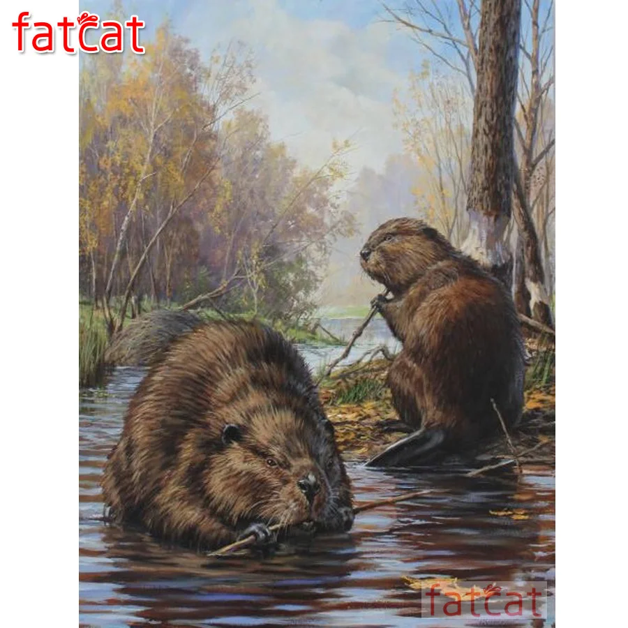 Алмазная живопись FATCAT 5d "сделай сам", лес, бобр, животные, квадратные, круглые, алмазная вышивка, распродажа, украшение для дома AE2224