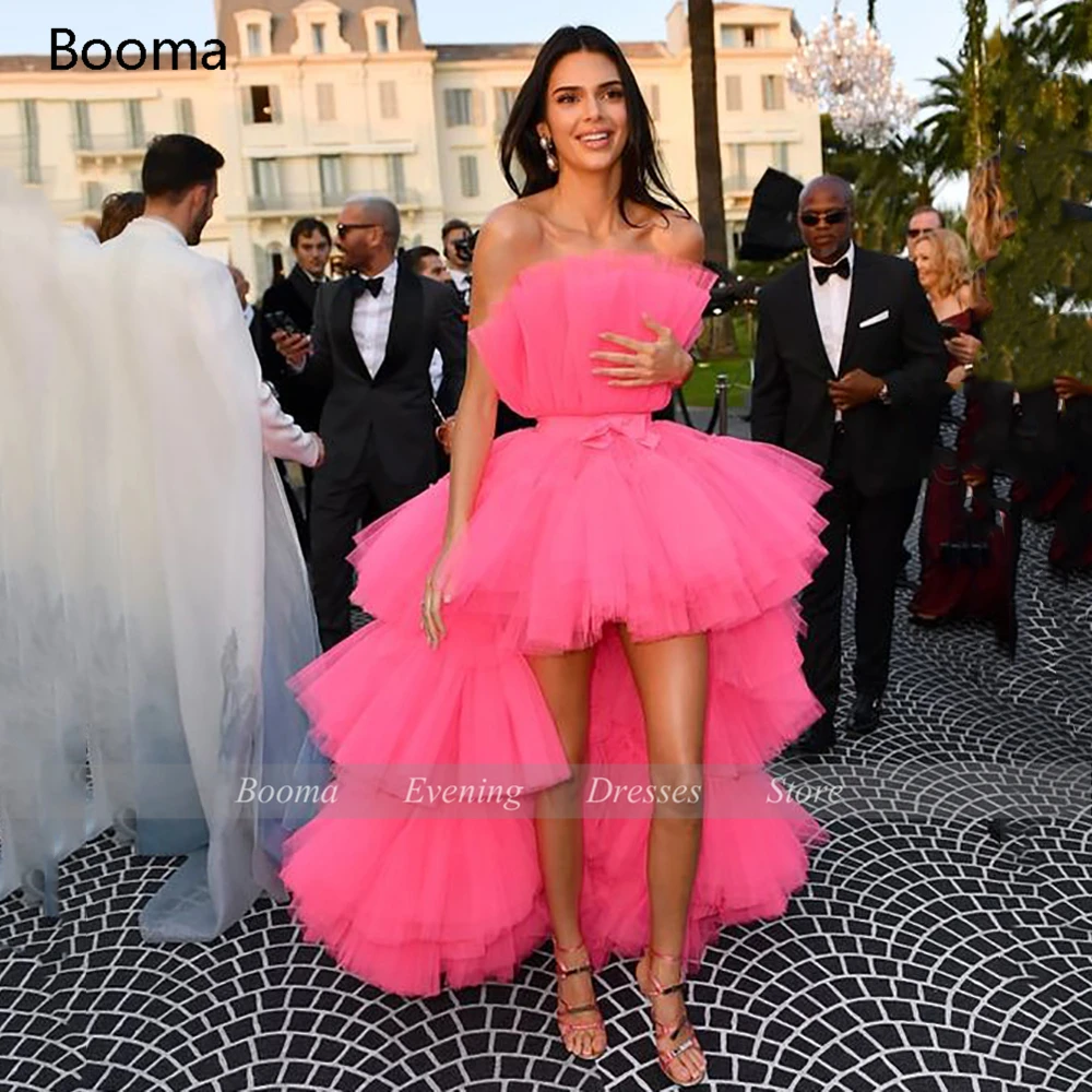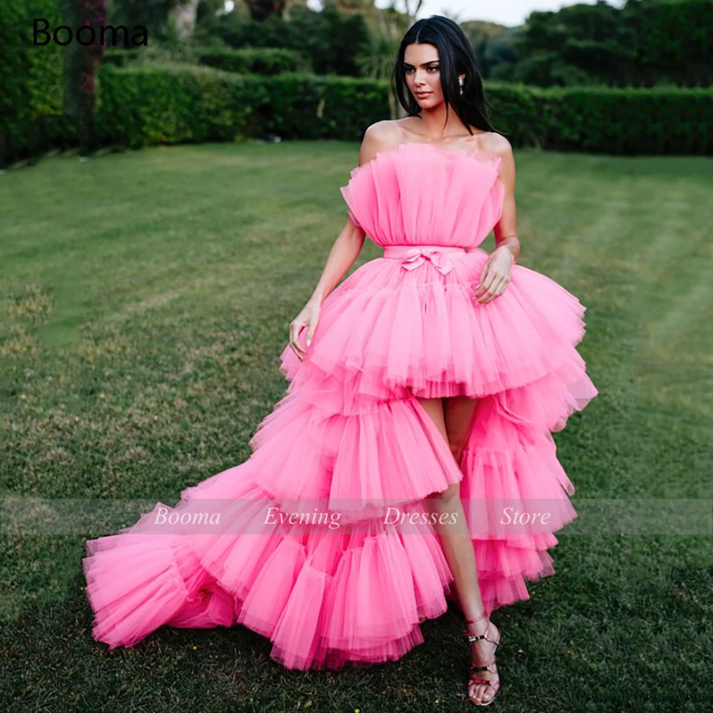 Платья для выпускного Booma Rosy Hi-Lo, без бретелек, Многоярусное тюлевые мини-платья знаменитостей, Короткие вечерние платья без рукавов с поясом
