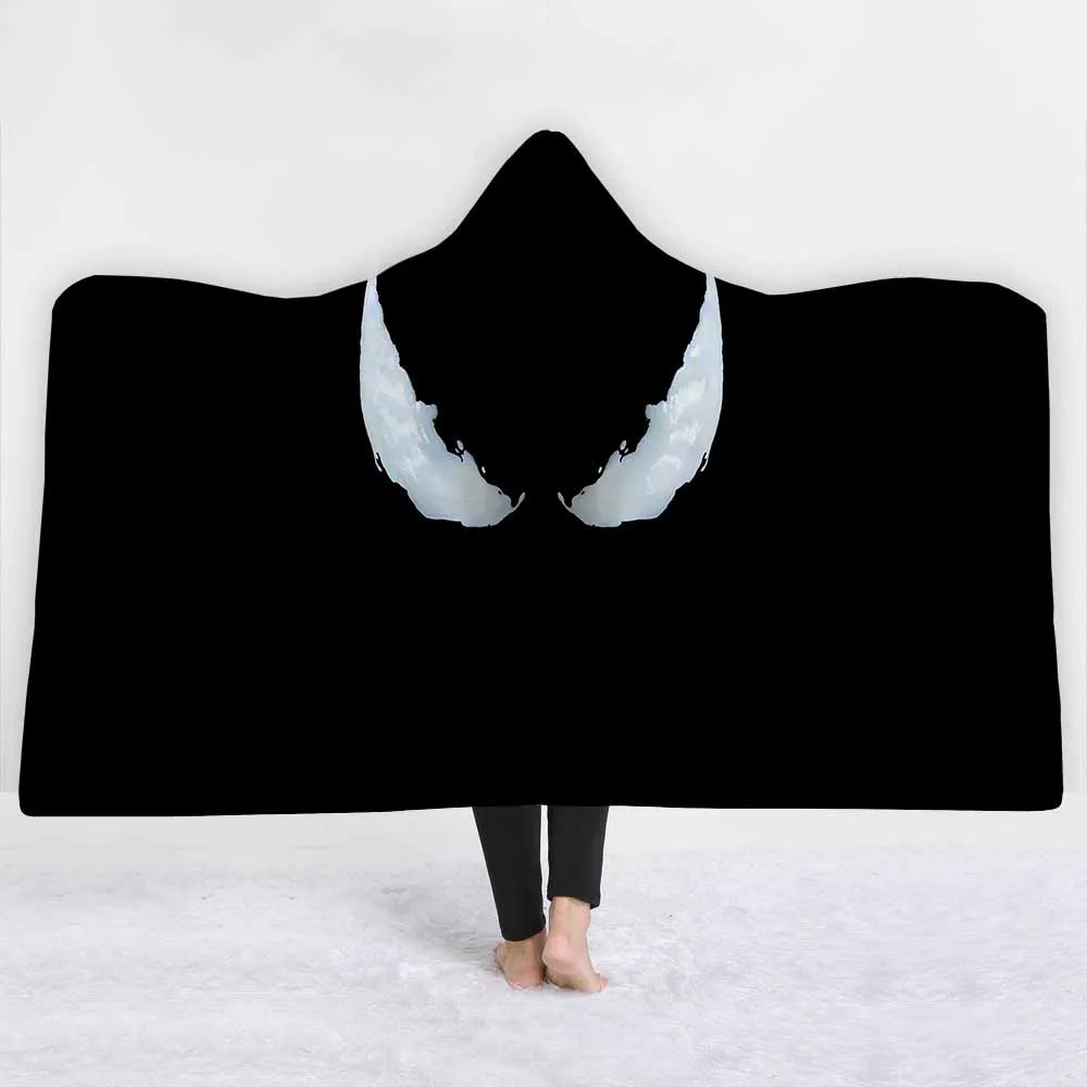 Одеяло с капюшоном и улыбкой черного дьявола, Крутое утяжеленное одеяло для путешествий, пикника, игр, ТВ, Лежачее худи, покрывало для дивана, кровати