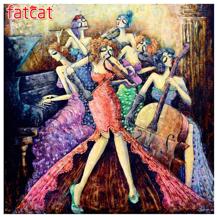 FATCAT 5d diy алмазная живопись мультфильм скрипка вышивка стразами Девушка полный квадратный круглый мозаика наклейки украшение дома AE2307