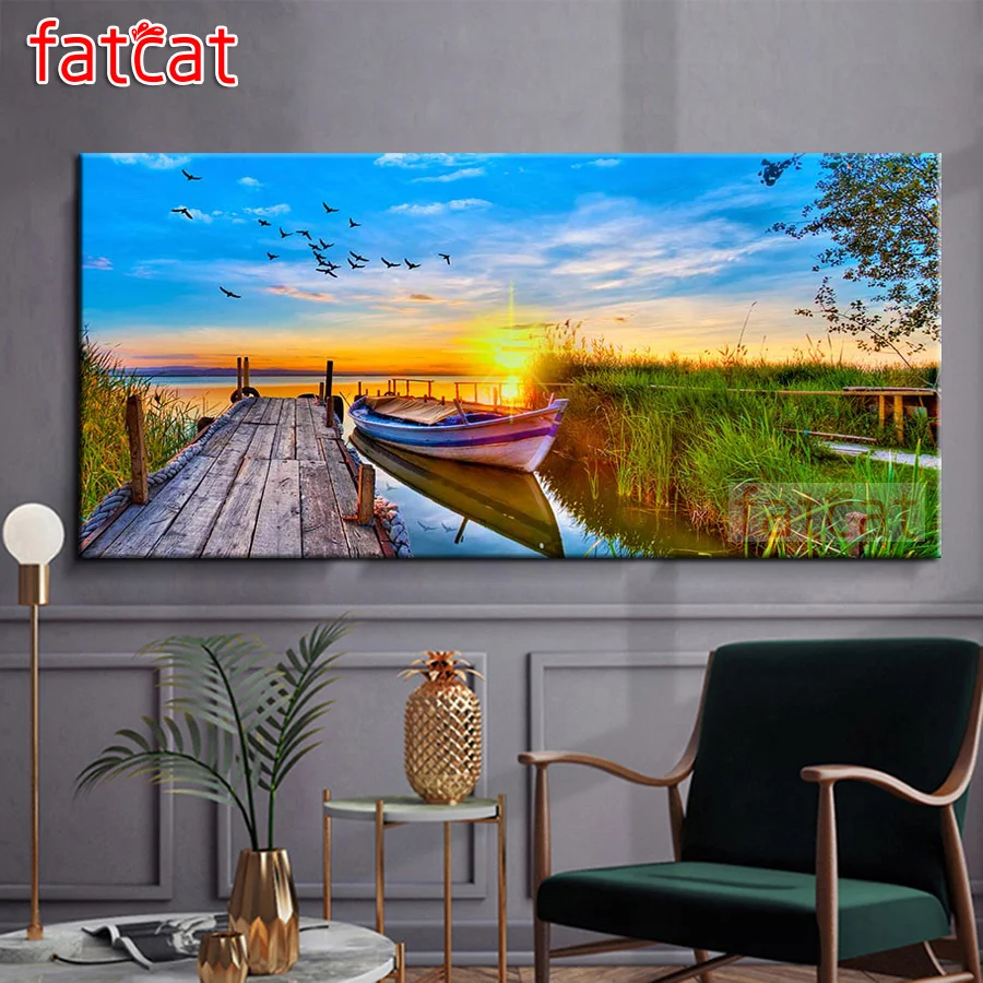 FATCAT закат пейзаж лодка большая Diy алмазная живопись полная квадратная круглая дрель 5d алмазная вышивка Мозаика Украшение AE2279