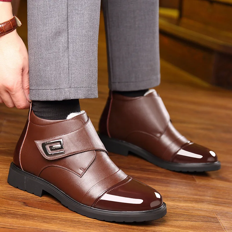Мужские ботинки из натуральной кожи, Теплые ботильоны, зимняя обувь 2020, KA2846, плюшевая хлопковая обувь