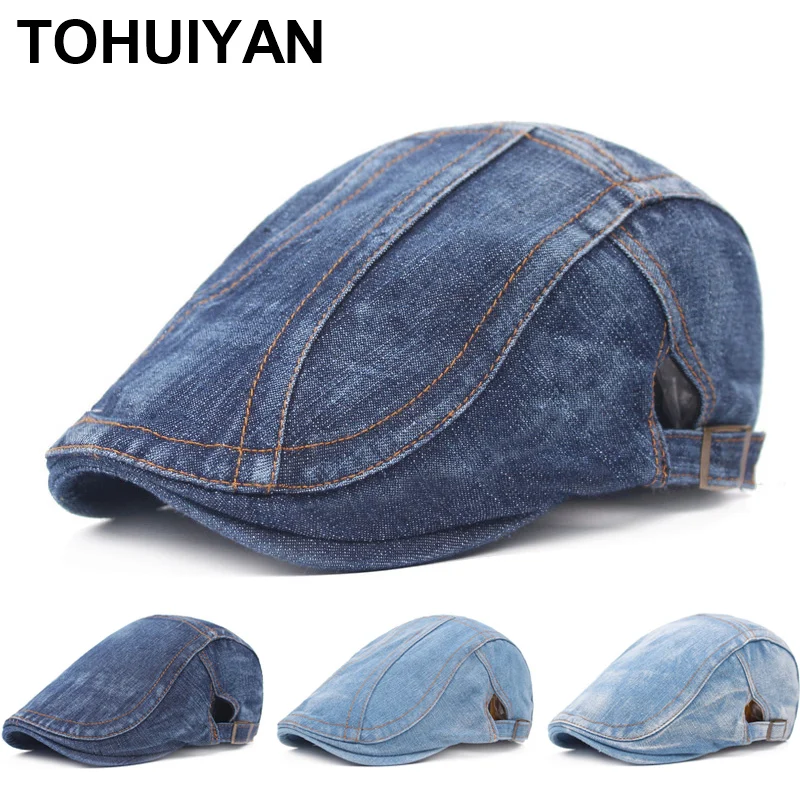 Регулируемый джинсовый берет для мужчин, женщин, повседневный берет...