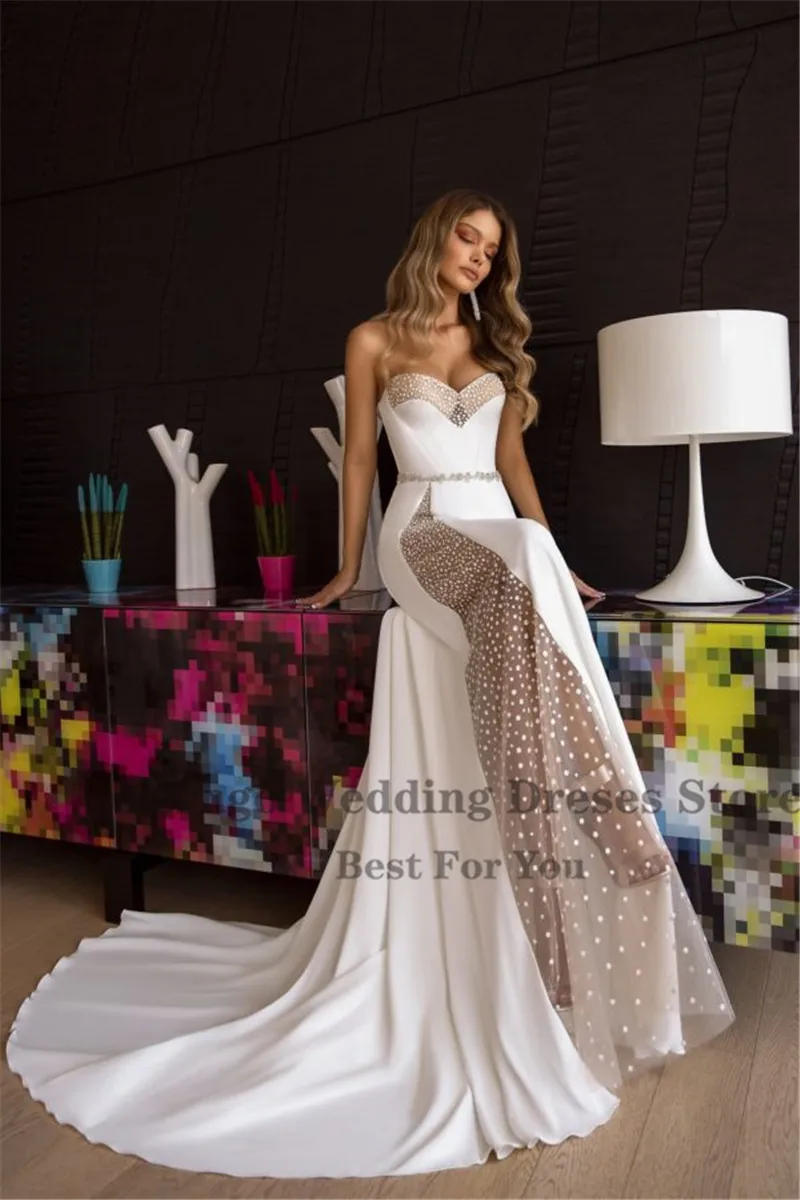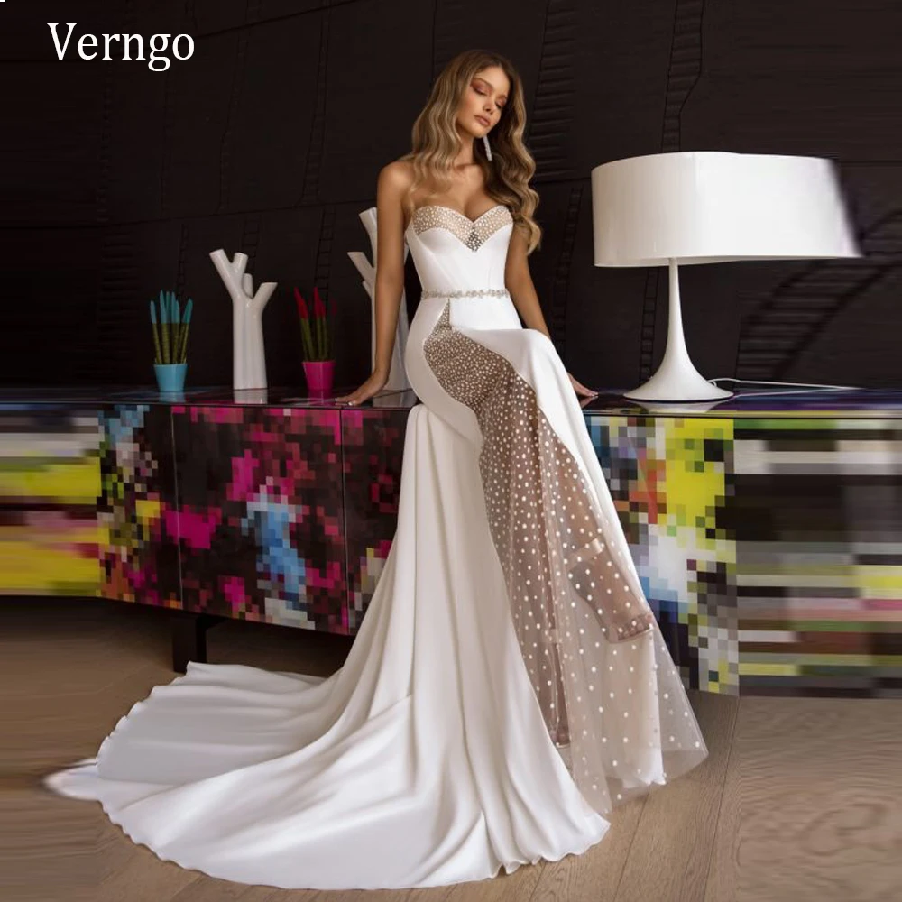 Verngo свадебное платье русалки 2020 милое шифоновое атласное простое свадебное платье в горошек новое длинное свадебное платье с бусинами и поясом