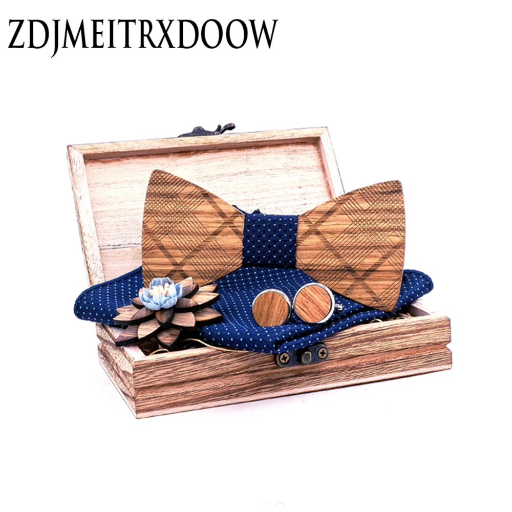 Мужские наборы галстуков, Модный классический деревянный галстук-платок в виде зебры, карманный квадратный галстук, праздничный подарок, галстук-бабочка, женский