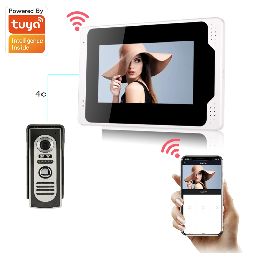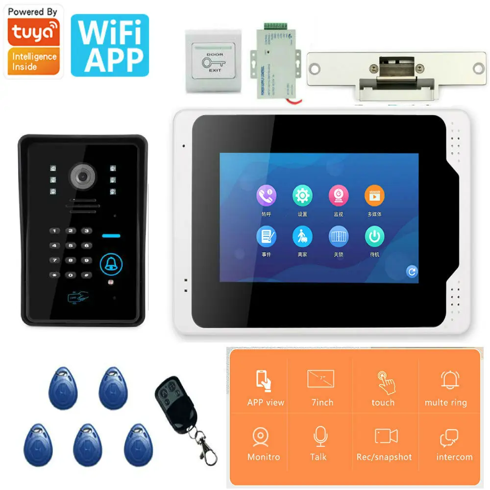 Приложение Tuya, 7 дюймов, проводной/беспроводной Wifi, ip-видео телефон, дверной звонок, домофон, система входа с проводной камерой 1080, ночное видение, поддержка удаленного приложения, разблокировка, запись, снимок