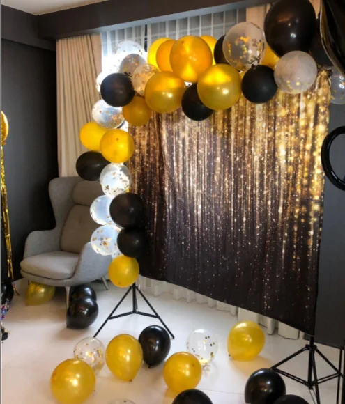 Фоны Avezano для дня рождения, черный золотой блестящий воздушный ш...