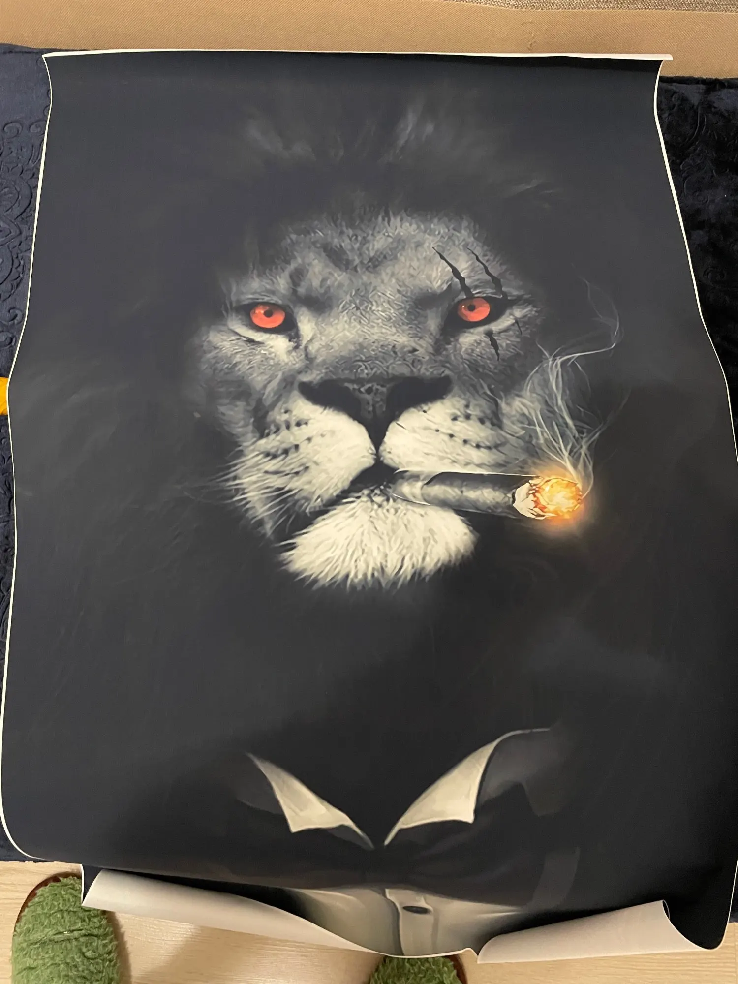 Черный дикий лев в костюме холст художественные плакаты и принты абстрактный Лев курит сигару холст настенные картины художественные картины