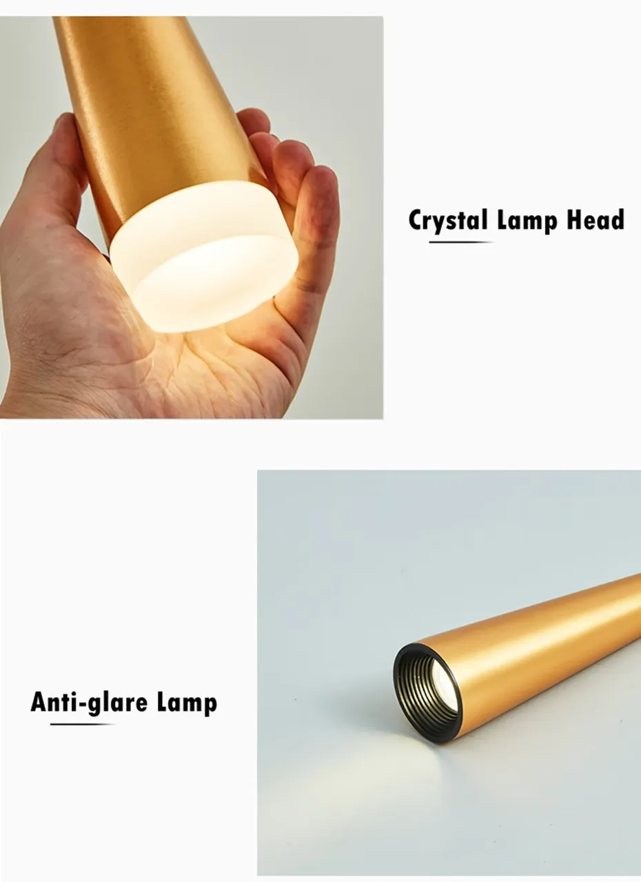 > 2 стиля лампы, хрустальный светильник, мягкий светильник и антибликовый Точечный светильник.> С отделкой краской и хорошей теплопроводностью, коррозией и устойчивостью к ржавчине,> Изысканный и деликатный светильник, мягкий и красивый, более удобный для просмотра телевизора ночью и чтения> Длина регулируется по вашему желанию, стандартная линия 1 м