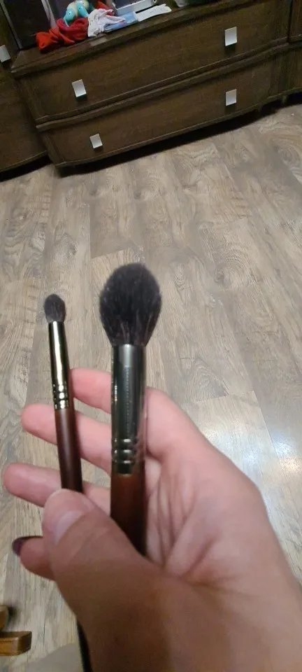 Заказываю кисти второй раз . И хочу сказать , что в первый они были лучше . Большая просьба кисть выглядит меньше и менее пушистей, и на ощупь будто не натуральная . Но пришли очень быстро и трек отслеживается