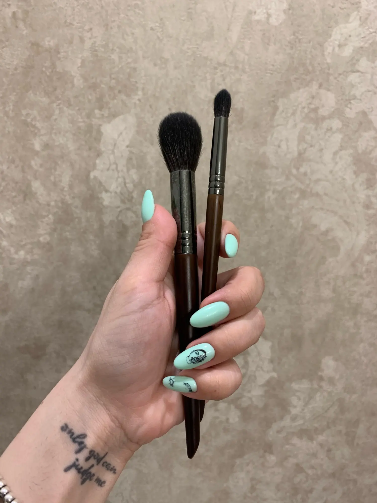 Хорошие кисти для растушёвки, приятные на ощупь, не сыпятся, достаточно плотные. В подарок дали две щеточки для бровей