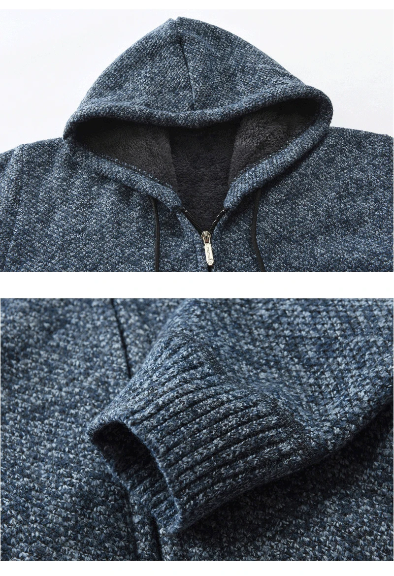 Мужской зимний толстый кардиган, Повседневный хлопковый флисовый свитер с капюшоном, Мужской трикотажный теплый свитер, джемпер, куртка, пальто