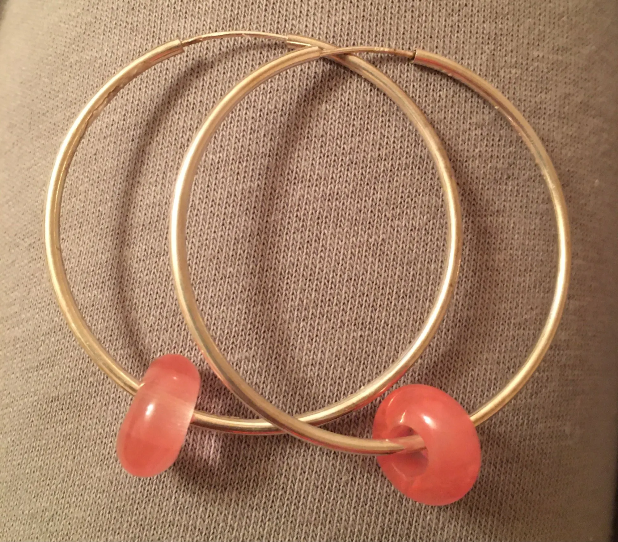 небольшие пухленькие колечки,доставка почти месяц до Москвы,есть отличия в оттенках.Обращайтте внимание на внутренний диаметр бусин,мне род сережки не подошли я правда,когда сережки заказывала тоже была не очень внимательнаупаковано было хорошо,при транспортировке колечки не повредились,но сам пакет, в котором они лежали был порван,но никак это ни на что не повлияло.пришло совместно с заказом из другого магазина-гигантскими серёжками,которые я планировала к этим пончикам
