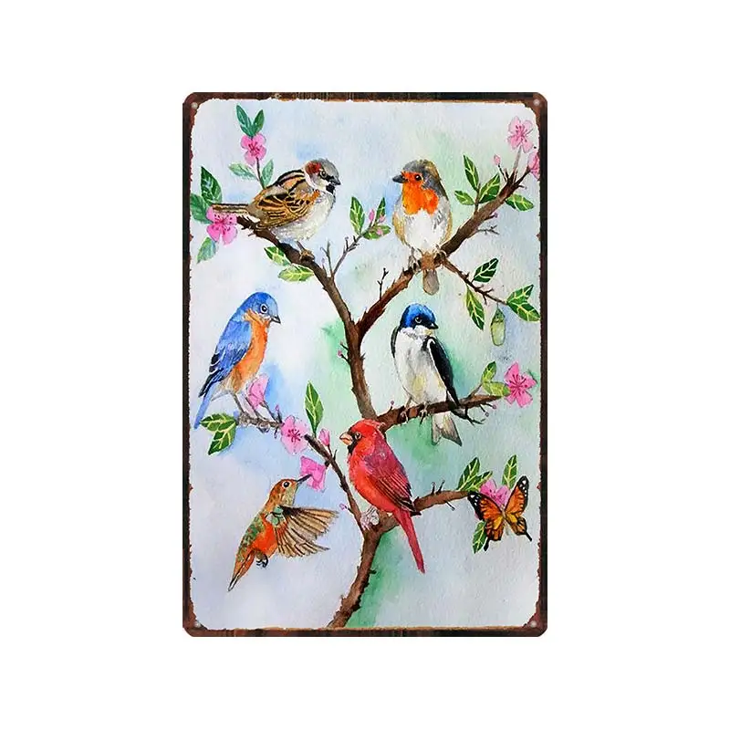 YZFQ птицы, металлическая пластина с винтажным рисунком, сады, цвет...