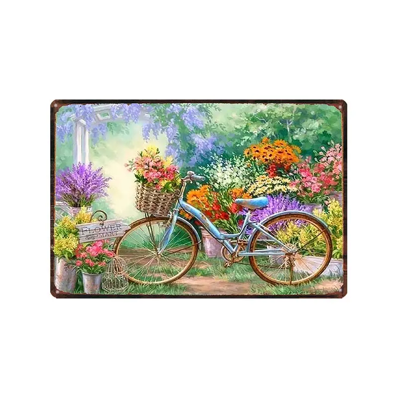 Цветы велосипед автомобиль доска Металл Винтаж Добро пожаловать Лав...