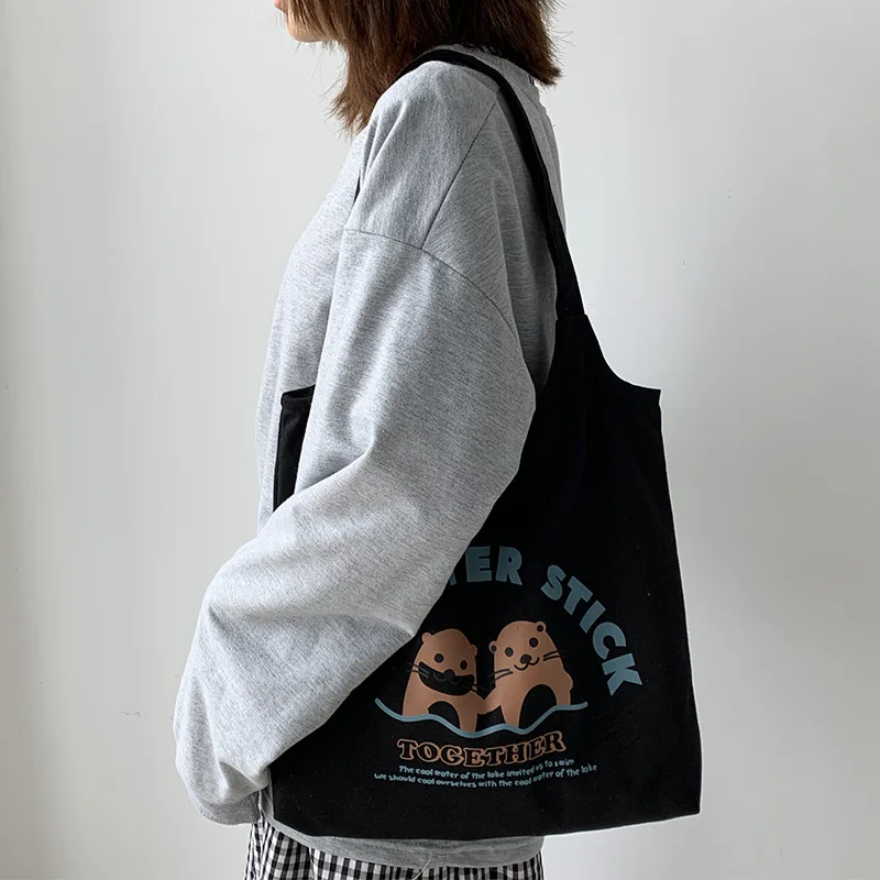 Холщовые сумки на плечо для девочек с мультипликационным рисунком, сумки для женщин, новинка 2020, повседневные сумки-тоуты, вместительные школьные студенты, сумка для книг на молнии