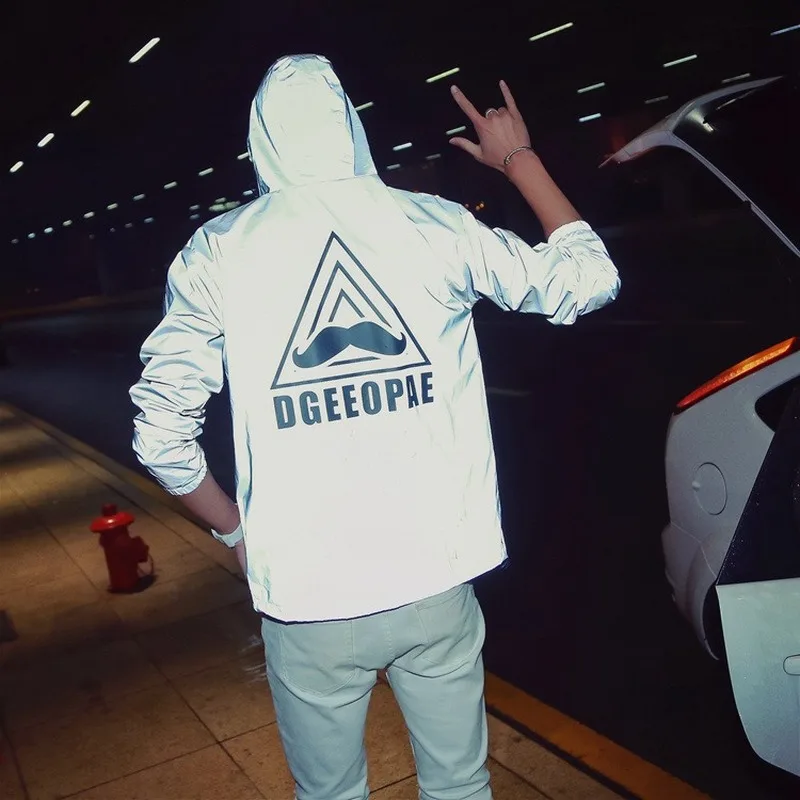 Мужская и женская Светоотражающая куртка, Новая Осенняя светящаяся Мужская и мужская куртка-бомбер, ветровка с капюшоном, уличная одежда