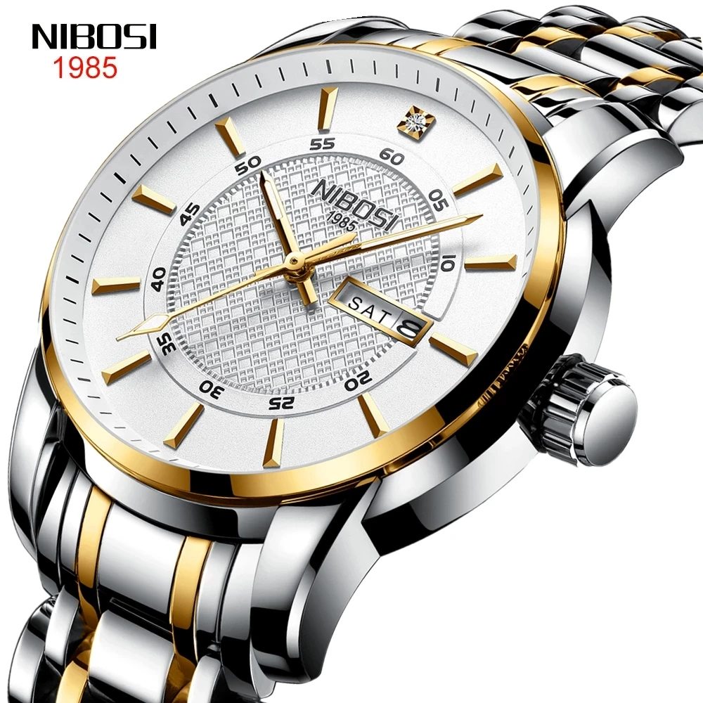 Часы наручные NIBOSI Мужские кварцевые, брендовые Роскошные спортивные модные водонепроницаемые, полностью стальные, 2021