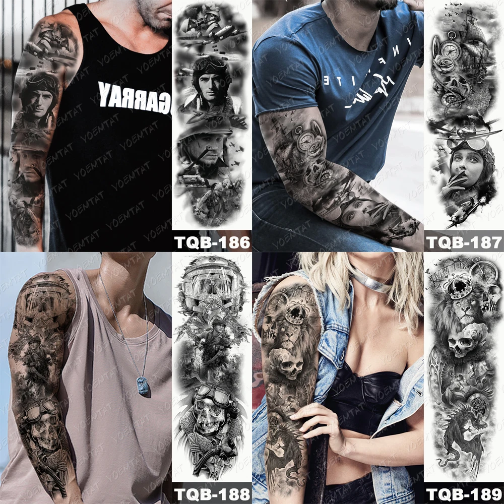 Большие рукава, тату, часы, Розовый Крест, дракон, водонепроницаемая временная татуировка, стикер, покер, Лев, боди-арт, полностью поддельные тату, для женщин и мужчин