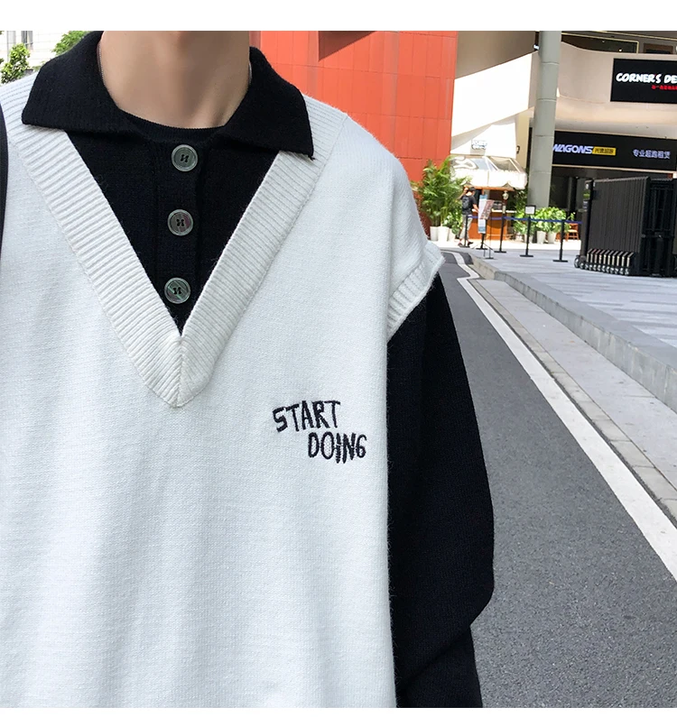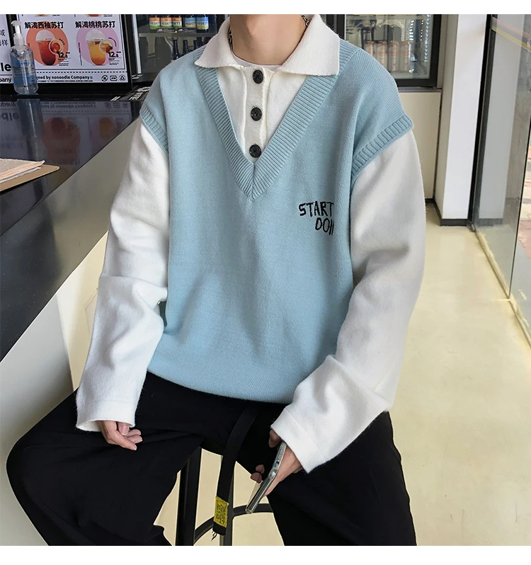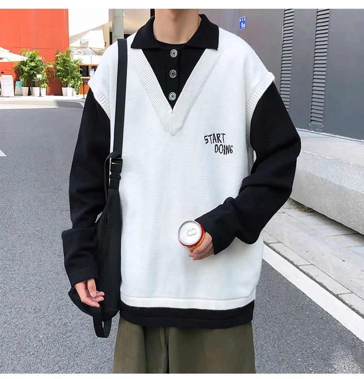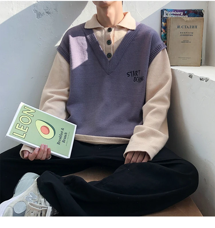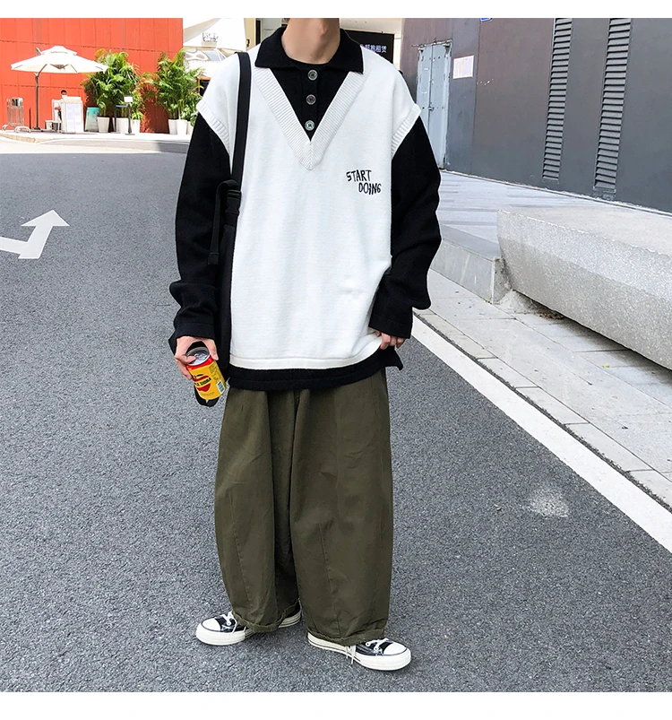 Свитер Мужской трикотажный из двух частей, в японском стиле