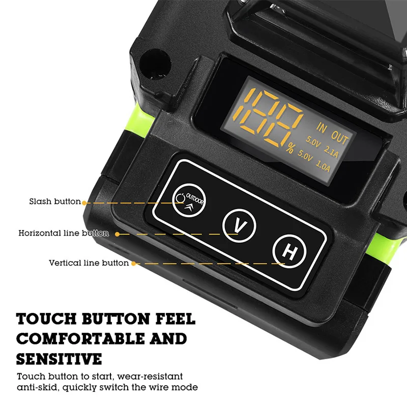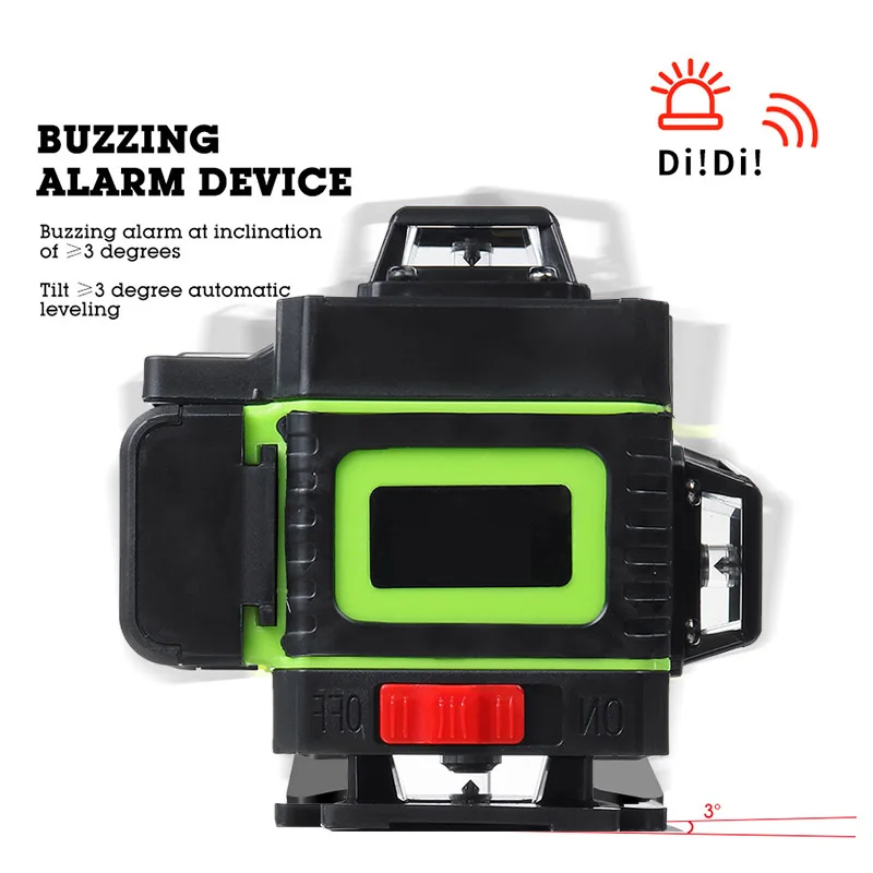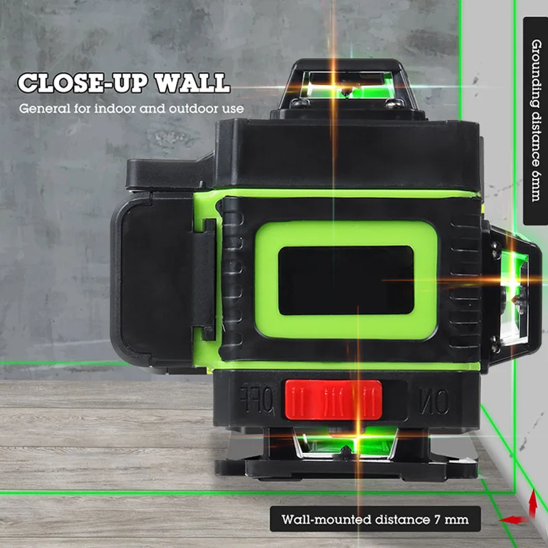 Применение:Вспомогательная фиксация плитки, отделка стен, фиксация напольной плитки, Лестничные Поручни, пушистый потолок, напольная плитка, штукатурка.Особенности:-ЖК-дисплей, более удобная работа-Система самовыравнивания.-Высокая яркость зеленого цвета, внутри и снаружи. Дальнее Расстояние проекции, высокая высота лазера, четкие линии, видимые на солнце.-Точное измерение и более удобный в использовании.-4/8/12/16 линия может быть регулируемой, подходит для различных случаев для удовлетворения различных инженерных потребностей.-Международный стандарт IP4/5 водонепроницаемый и пыленепроницаемый, многократная защита, более длительный срок службы в суровых условиях.-Аккумулятор большой емкости с увеличенным сроком службы.-Функция автоматического самовыравнивания ± 3 °. Звуковое предупреждение, когда превышает диапазон автоматического выравнивания.-Наклейка на стену 360 ° без мертвого угла.-Высокое качество и долгий срок службы.-Простота в эксплуатации.-Наклон под любым углом может быть достигнут наклоном фюзеляжа.-Высоту можно регулировать с помощью подъемной платформы, высота составляет между 2,5-9 см.