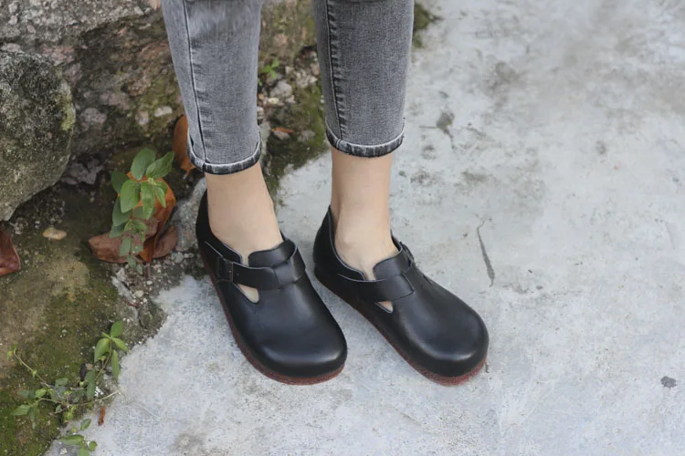 Женская обувь ручной работы, натуральная кожа, плоская подошва, одн...
