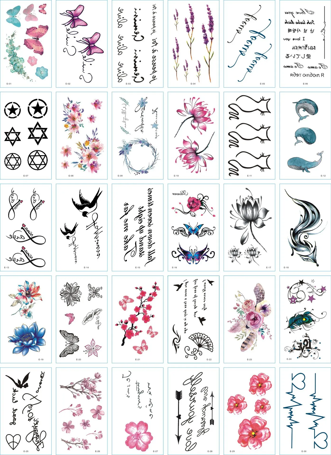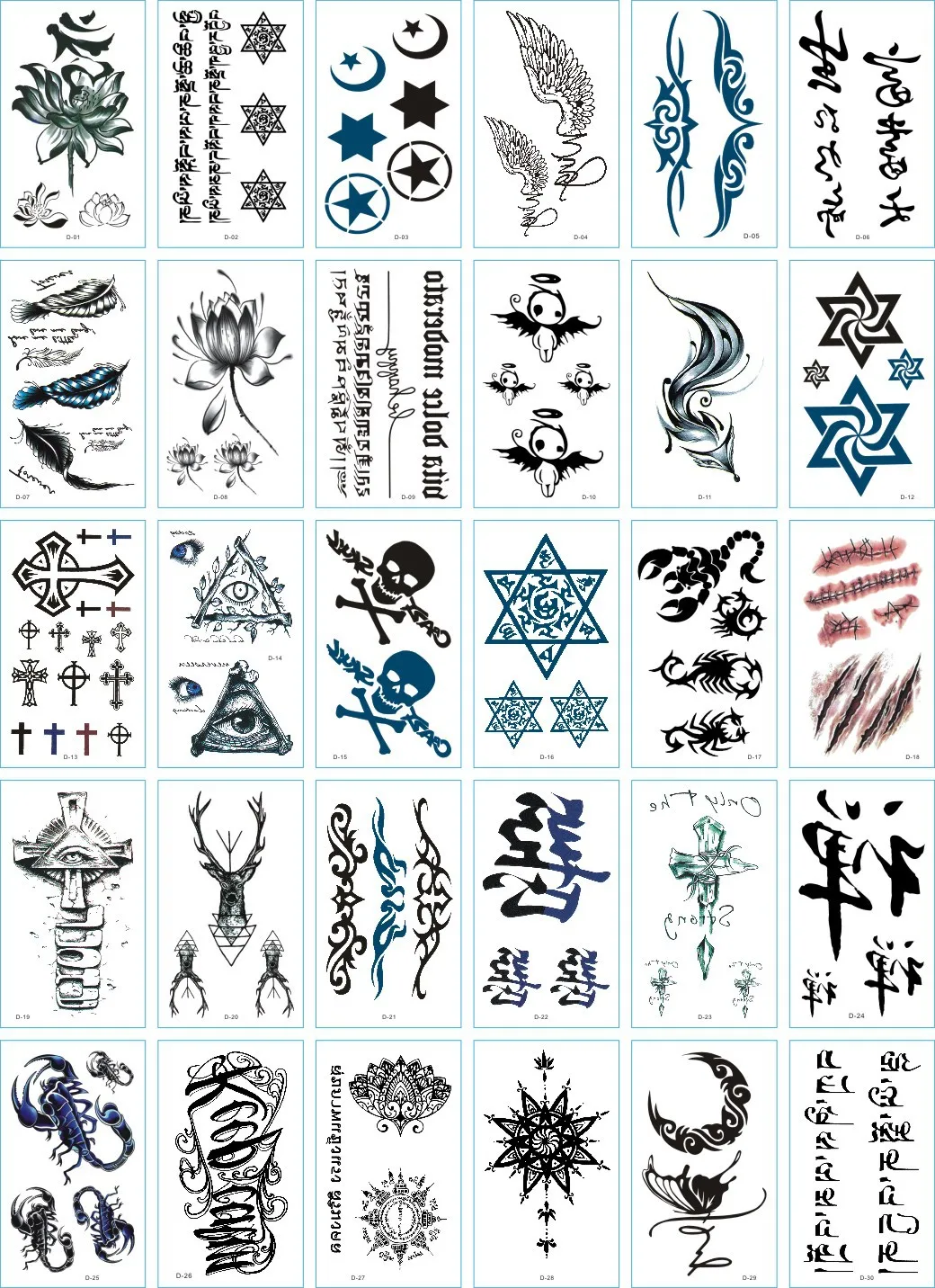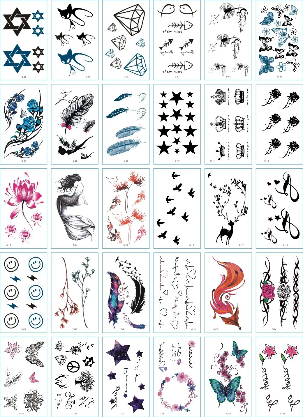 Временные татуировки, водонепроницаемые, одноразовые, 30 шт.компл.