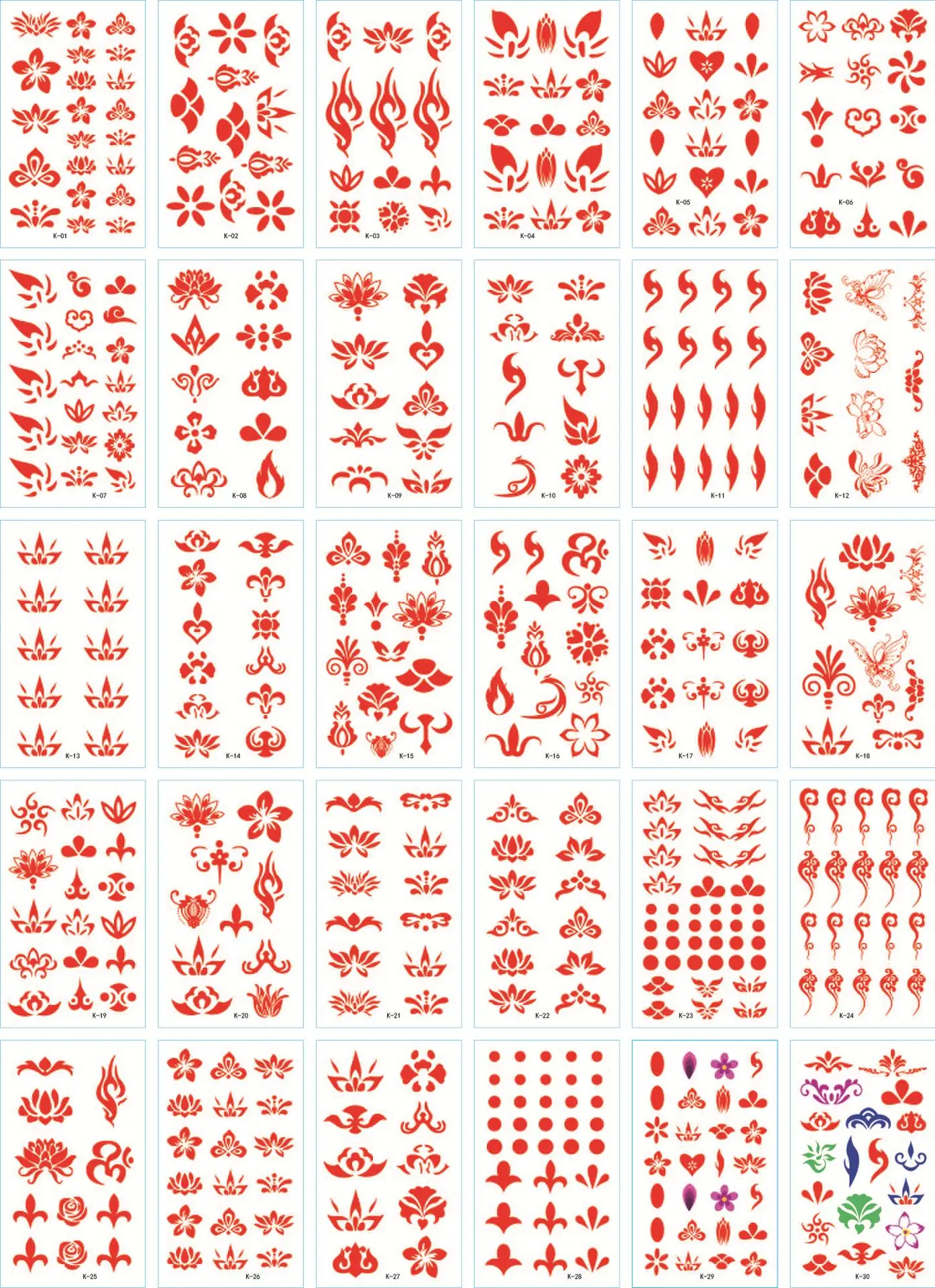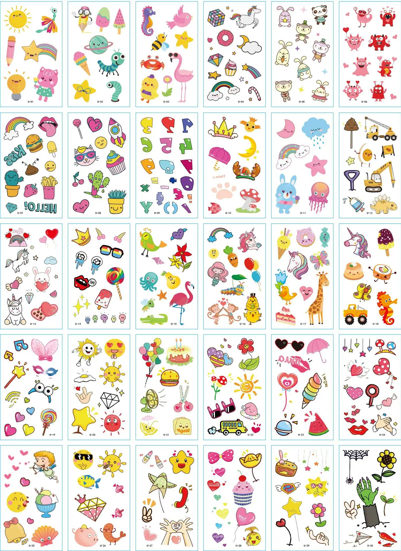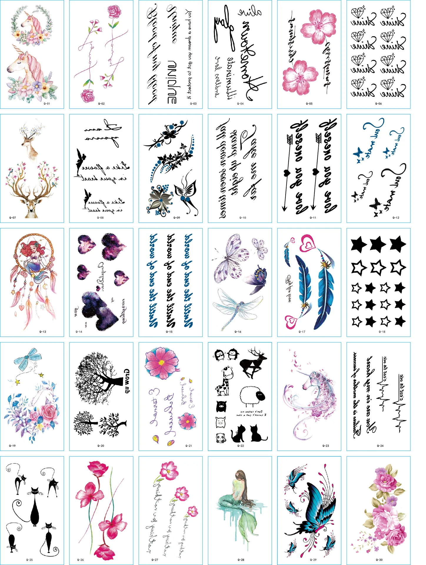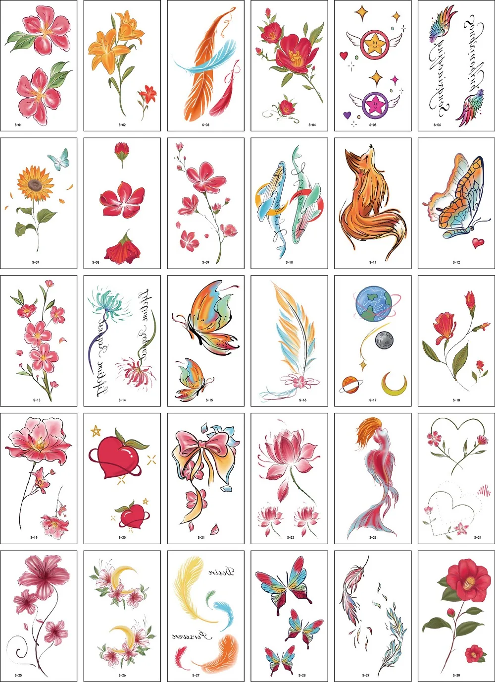 Временные татуировки, водонепроницаемые, одноразовые, 30 шт.компл.