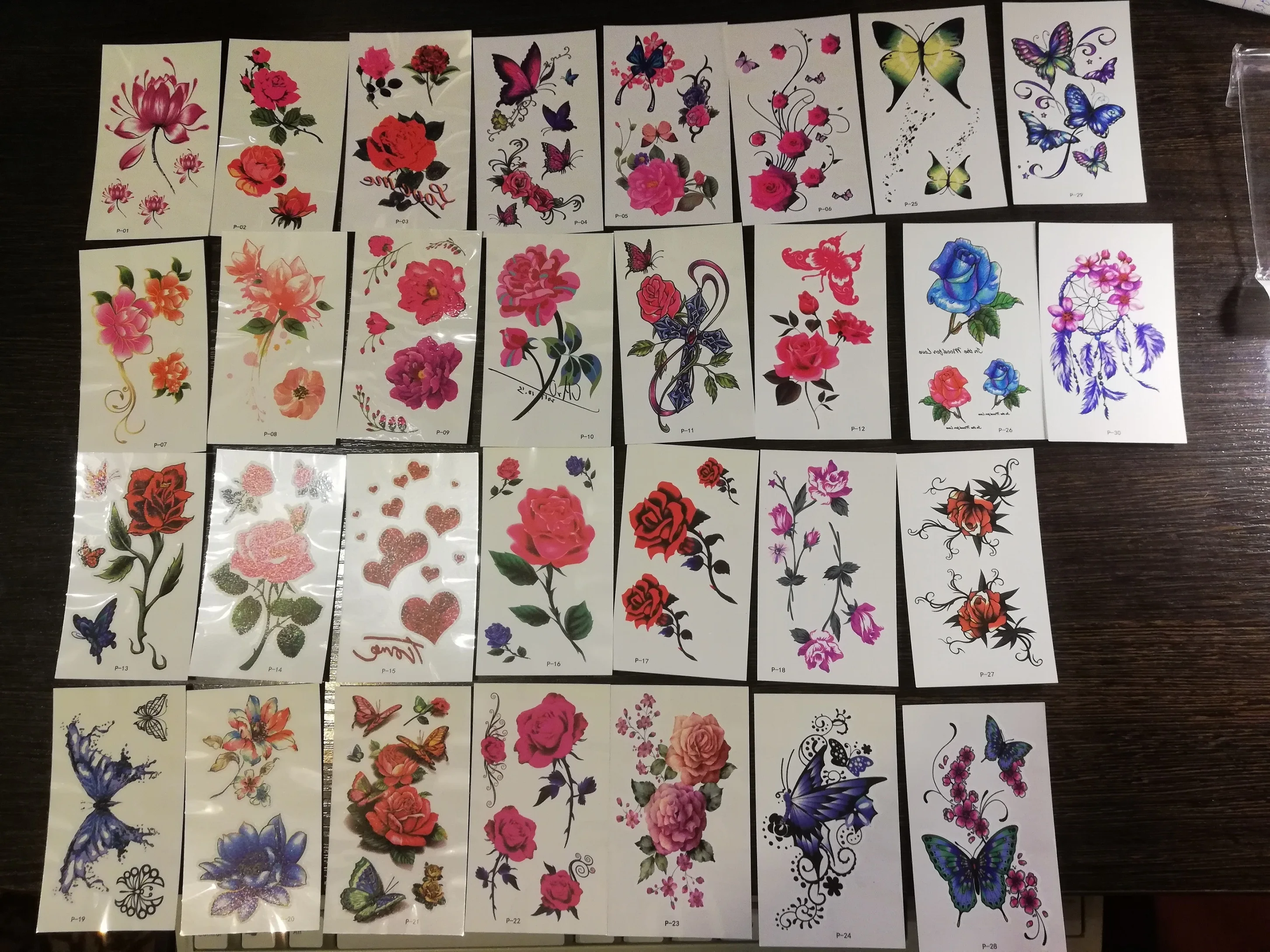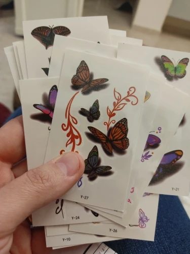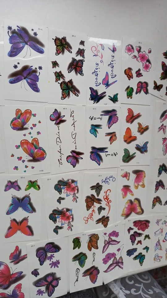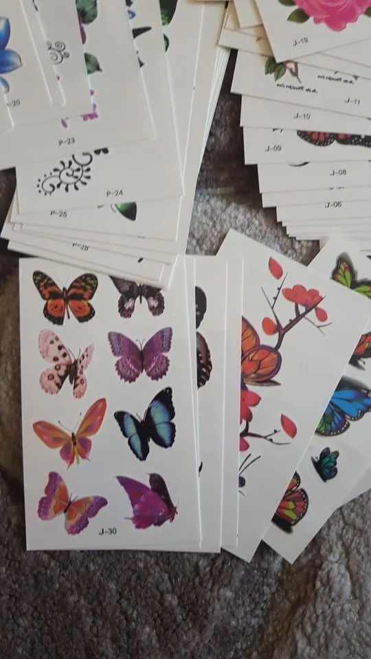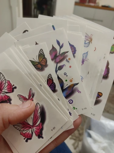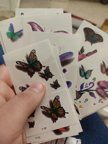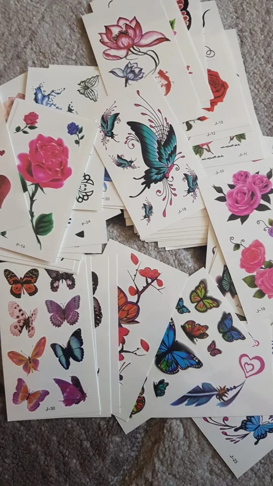 Татуировки пришли быстро 2 недели . их очень много ,но не очень хорошее качество печати на некоторых. Размер небольшой ,хорошо будет на запястье , на плечо , либо на щиколотку . В принципе есть неплохие но нужно выбирать .