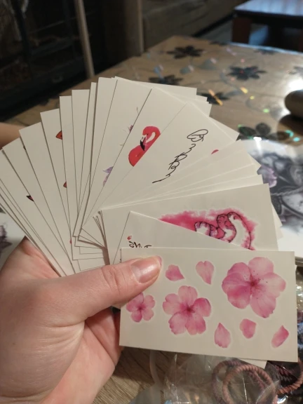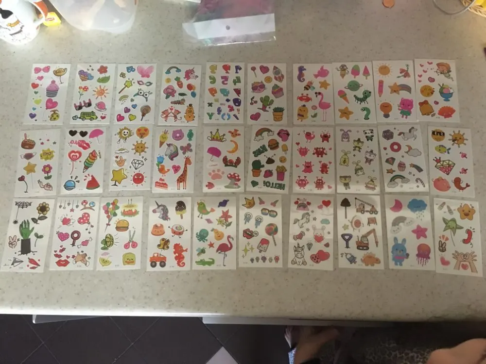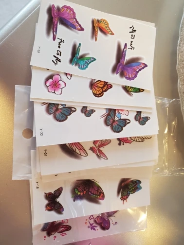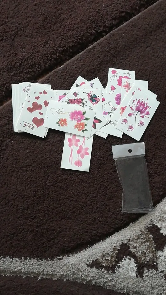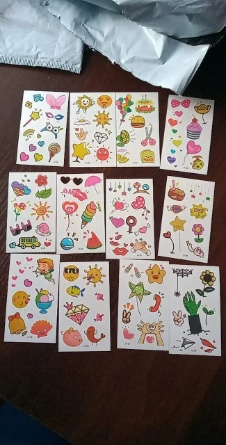 Наклейки отправили на четвёртые сутки, с момента оплаты посылка до поволжья дошла за 15 дней. Наклейки соответствуют описанию, размер совпадает с указанным. 30 штук в упаковке. Единственный минус наклейки (татушки) тусклее и размытие чем на фото (не все). Переводятся очень просто.