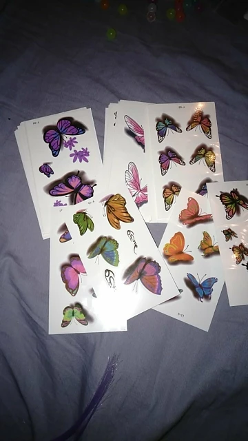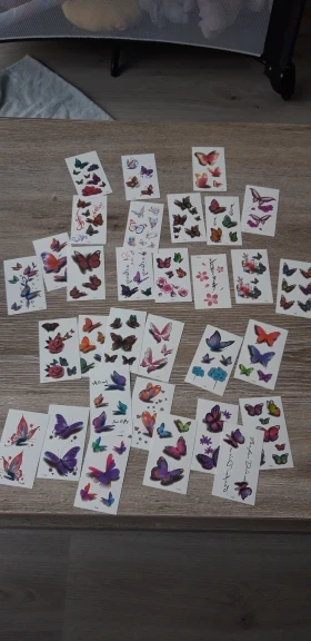 Добрый день! Татушечки замечательные.хорошо крепятся .яркие ,каждая картинка на отдельном листике не нужно вырезать .Ребенок в восторге.Спасибо продавцу.