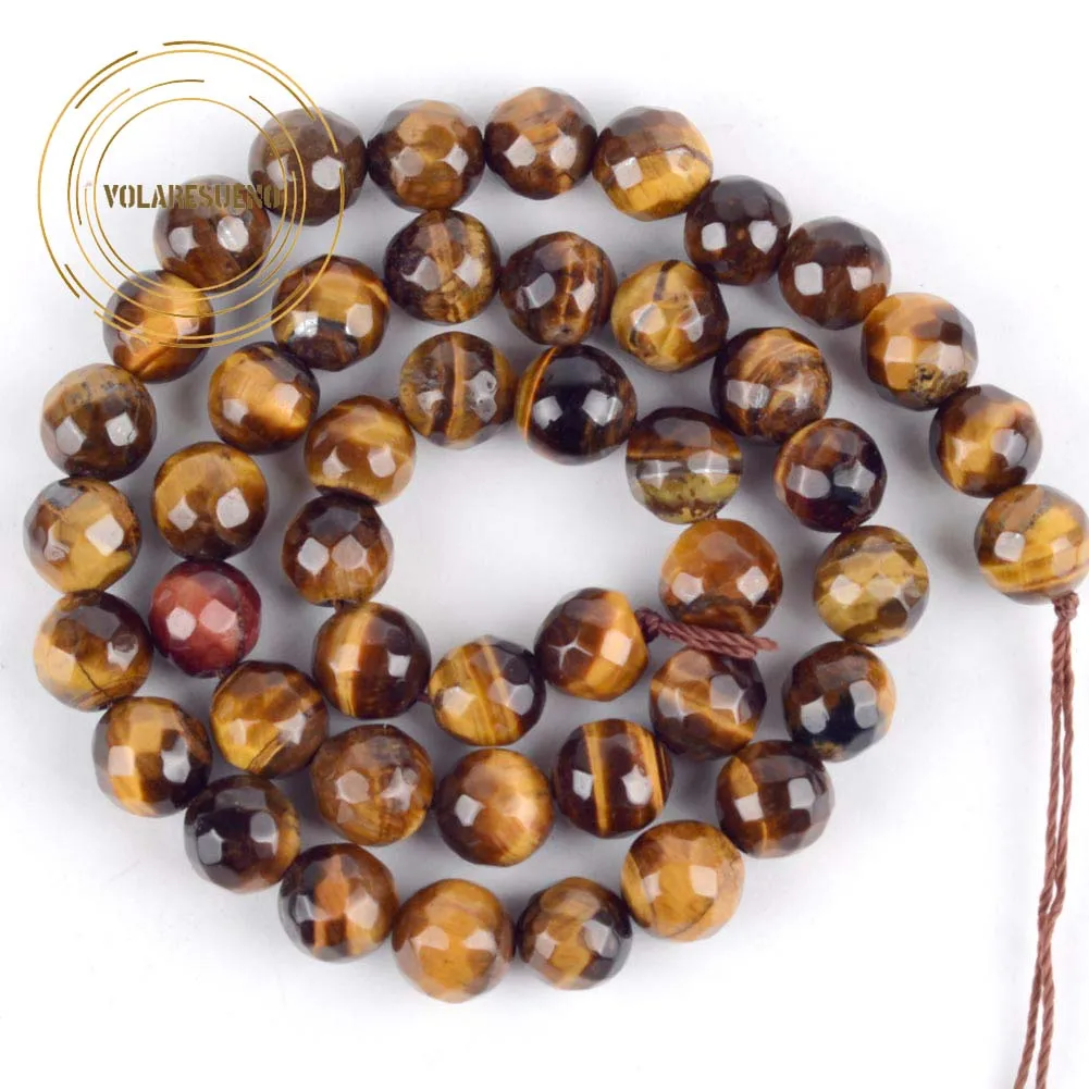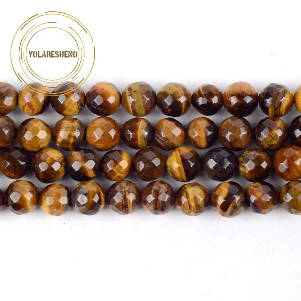 Название камня: натуральный граненый желтый тигровый глаз круглые каменные бусины