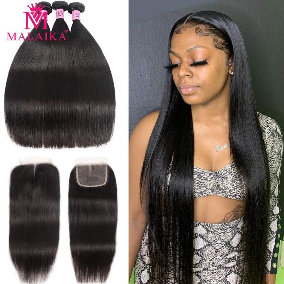Malaika прямые человеческие волосы пряди с закрытием перуанские волосы пряди с фронтальной натуральная Волосы Remy пряди волос с закрытием