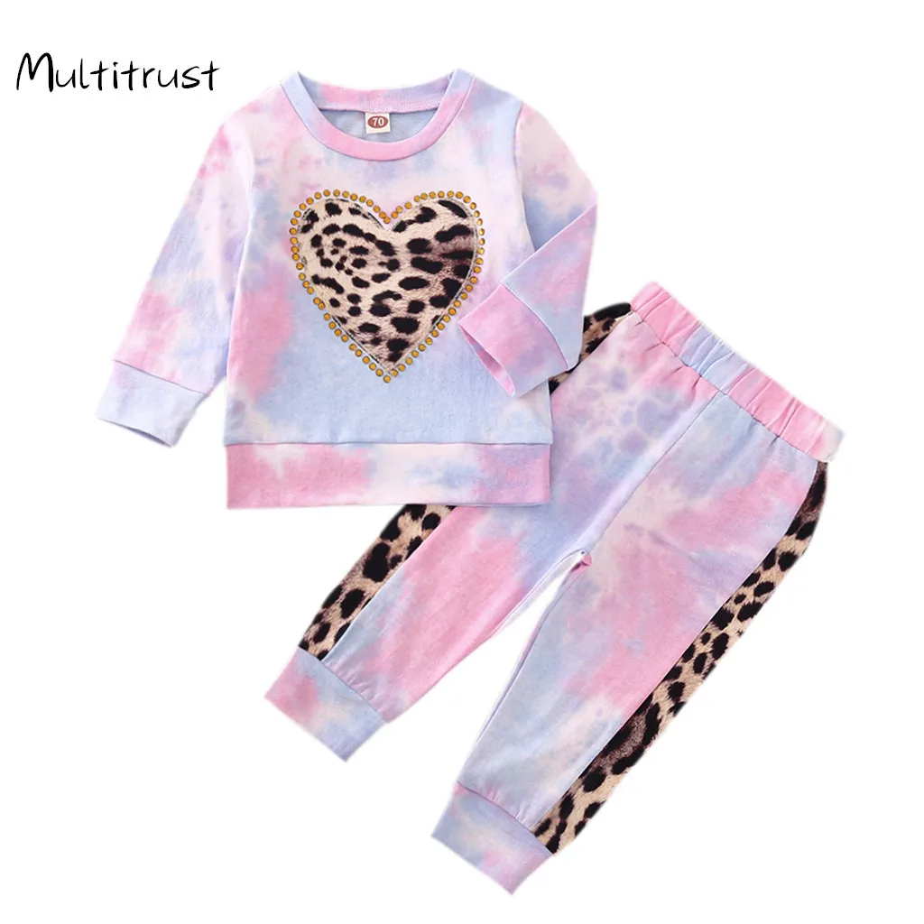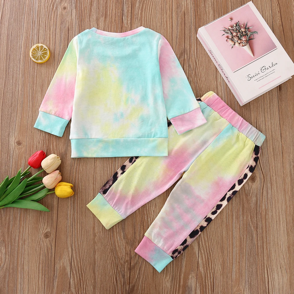 Осенняя одежда для малышей; Пуловер с длинными рукавами и принтом красителя; Топ + штаны; Комплект одежды из 2 предметов