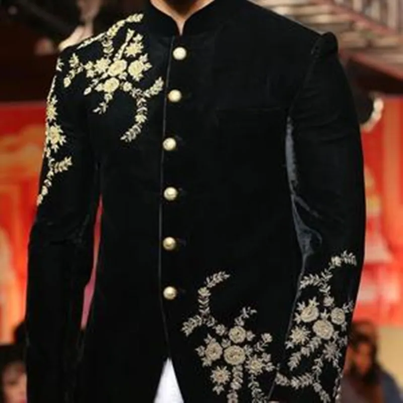 Роскошный черный мужской костюм с золотыми бусинами, однобортный мужской костюм с аппликацией, индивидуальный пошив