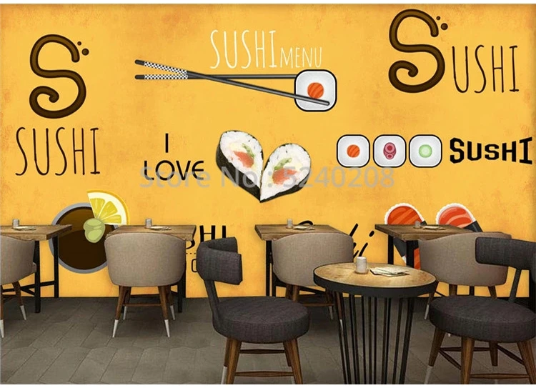 Настенные 3D обои любого размера, ручная роспись, Японская еда, суши, ресторан, фон, Настенный декор, самоклеящиеся наклейки на стену