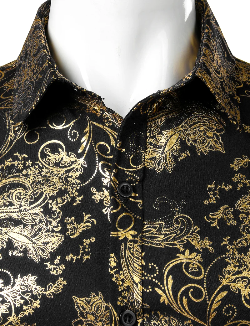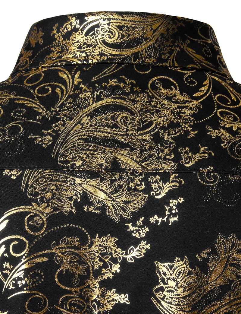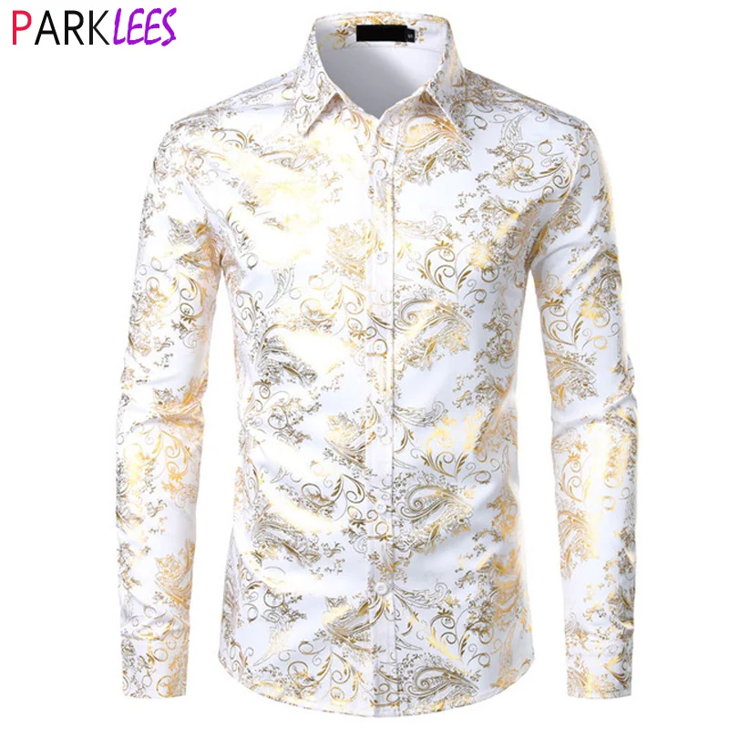 Блестящие Пейсли печатных роскошное платье рубашки для мужчин с длинным рукавом Повседневная кнопка вниз Белый Свадебные жениха Вечерние рубашка для обеда мужская сорочка