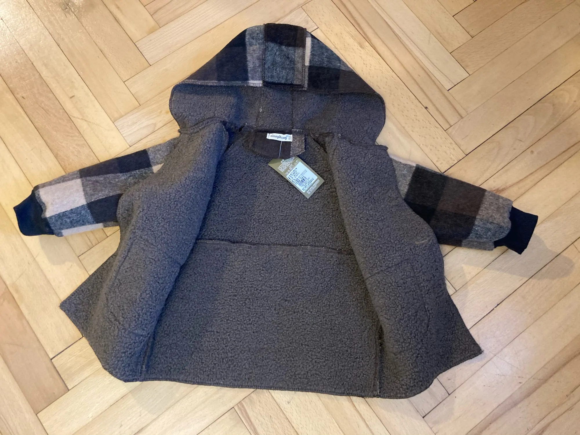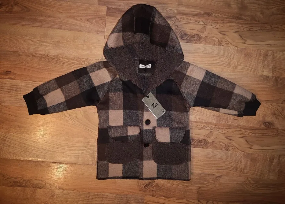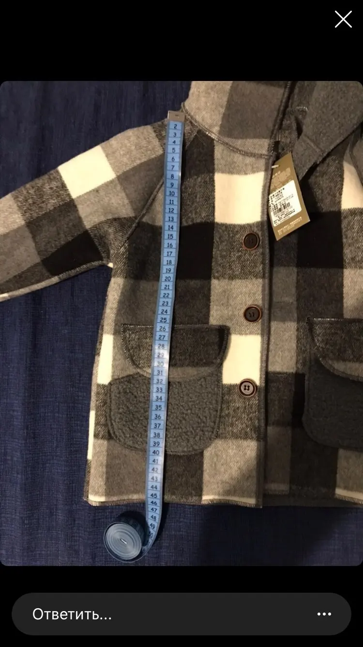 Классный жакет! На прохладную погоду будет самое то))) размер в размер идёт, нам на рост 82 большой, носить можно было б , по длине по колено, но из-за фасона он очень нам широкий , поэтому заказала ещё один на размер поменьше