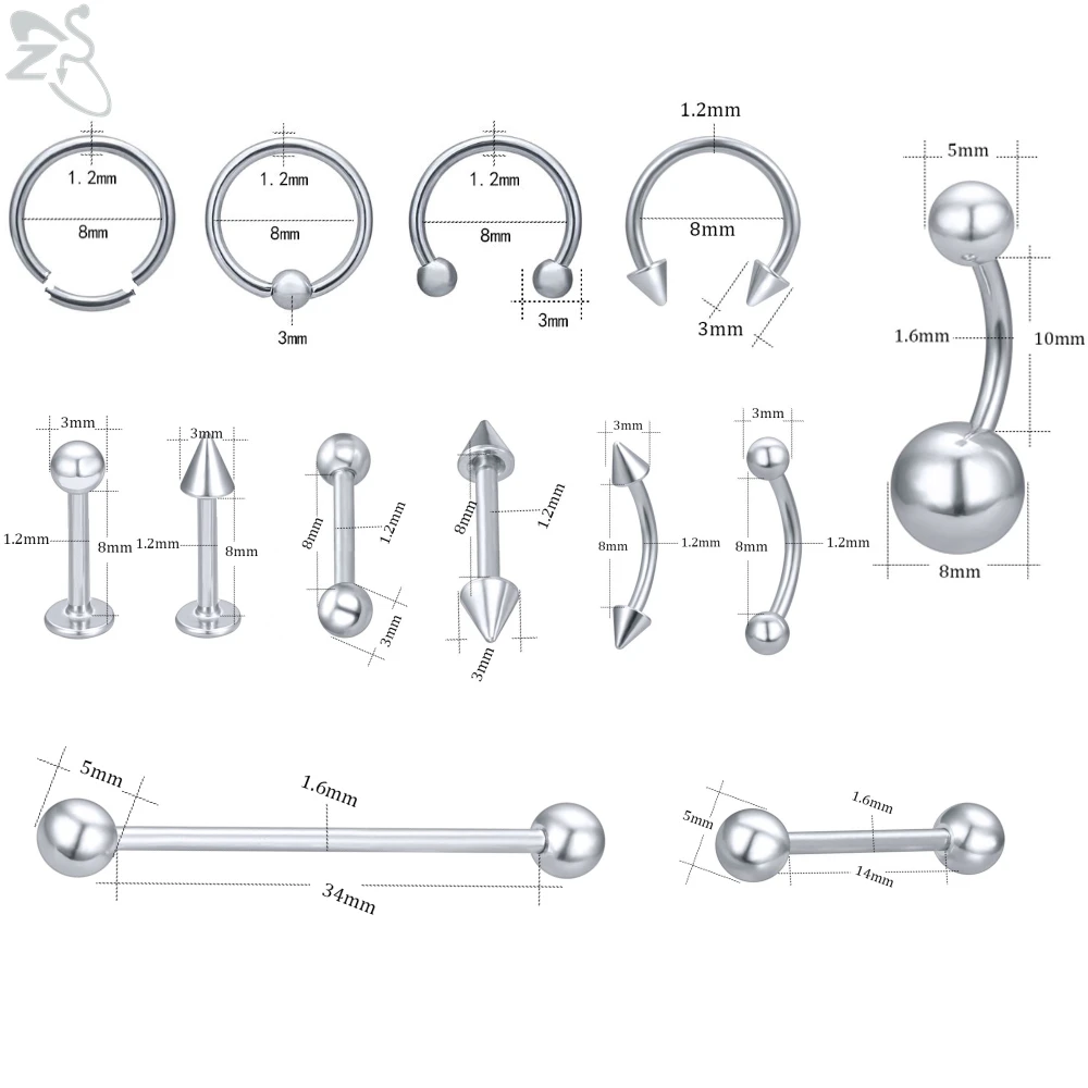 Набор ZS инструмент для пирсинга тела, 12-20 г, одноразовые профессиональные иглы для пирсинга, зажим перчатки, инструменты, пирсинг в уши, Козелка, носа, пупка