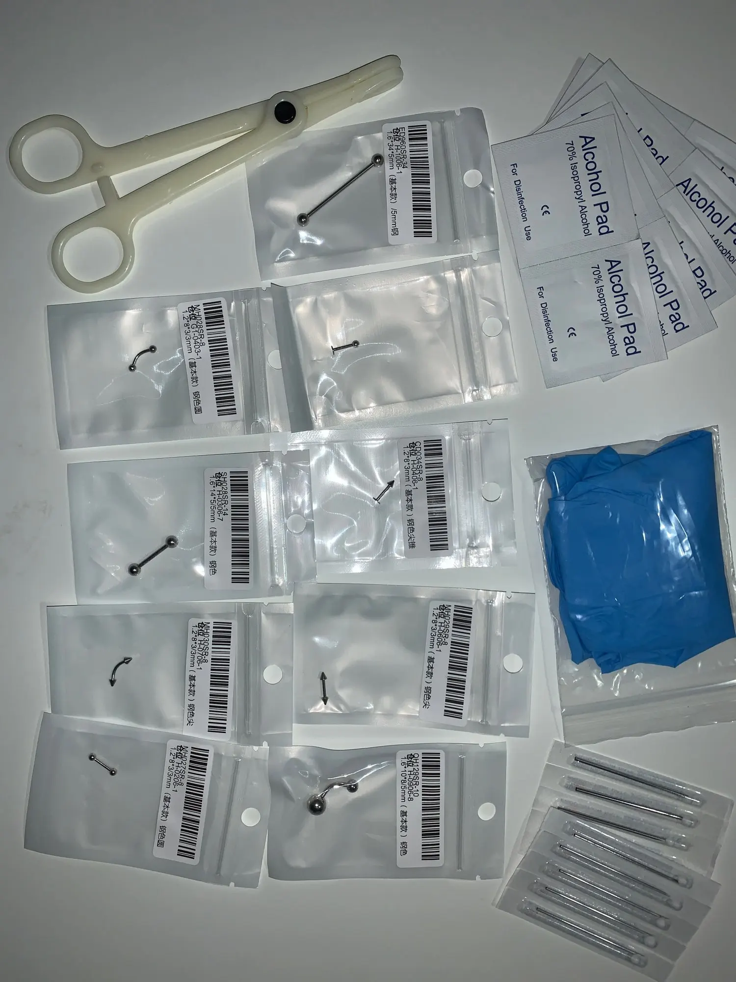 Luvv itttt, иглы острые, он поставляется с 14g иглами и 16g, и большим количеством ювелирных изделий и спиртовых подушечек, в основном все, что на картинке, наиболее хорошо помещается в пакет, прошло немного времени, чтобы прийти, но это нормально, очень доволен этим