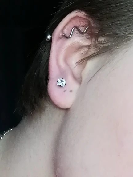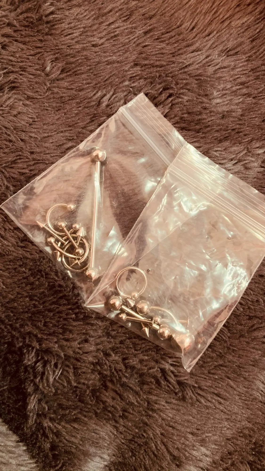 Посылочка пришла цела, запакована неплохо, в комплекте есть разного вида пирсинг, спиртовые салфетки, зажим, перчатки(большие на меня) и 5шт. 16g 5шт. 14g игл для пирсинга, иглы острые хорошо запакованы. На фото подруге пробивала вторую мочку(16g), индастриал(14g), и септум носа(14g). Для индастриала с набора взяла штангу-подошла идеально, для септума-циркуляр. С продавцом не общалась, в целом довольна :)