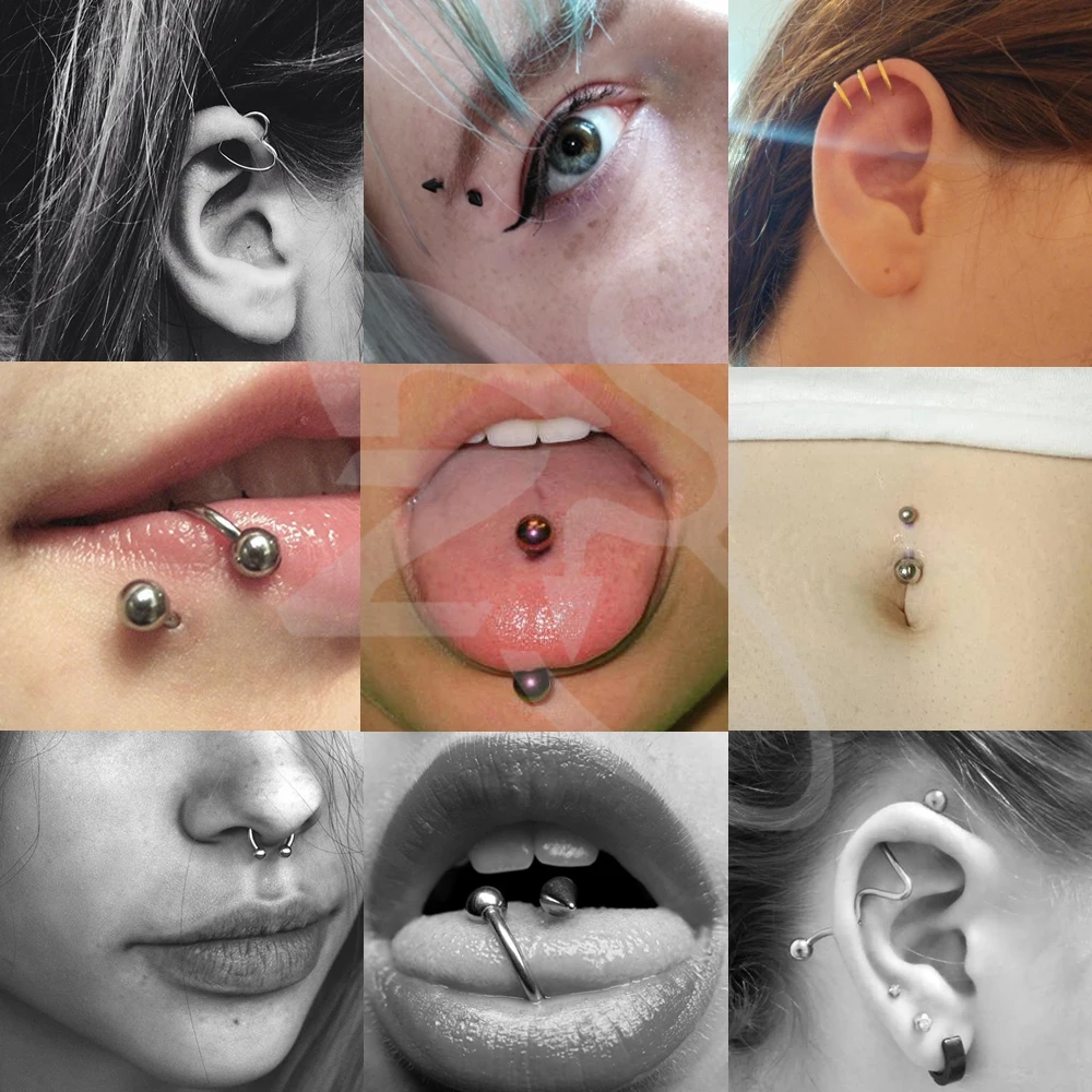 Это не займет слишком много времени, как указано в описании! Предназначен для использования! Иглы 5 16 г и иглы 5 14 г. 10 спиртовых подушечек, 4 кольца перегородки, 1 промышленный, 1 морской, 2 жгута, 1 ниппель, 2 лабрата, один с шипами и один с шариковой верхней частью, И 2 маленьких прямых стержня 1 с шипами, а другой с шариками.