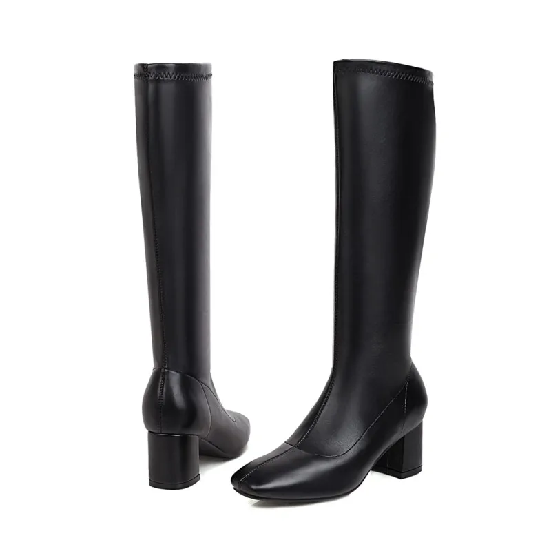 Женские высокие сапоги на толстом каблуке, сапоги на молнии, большо...