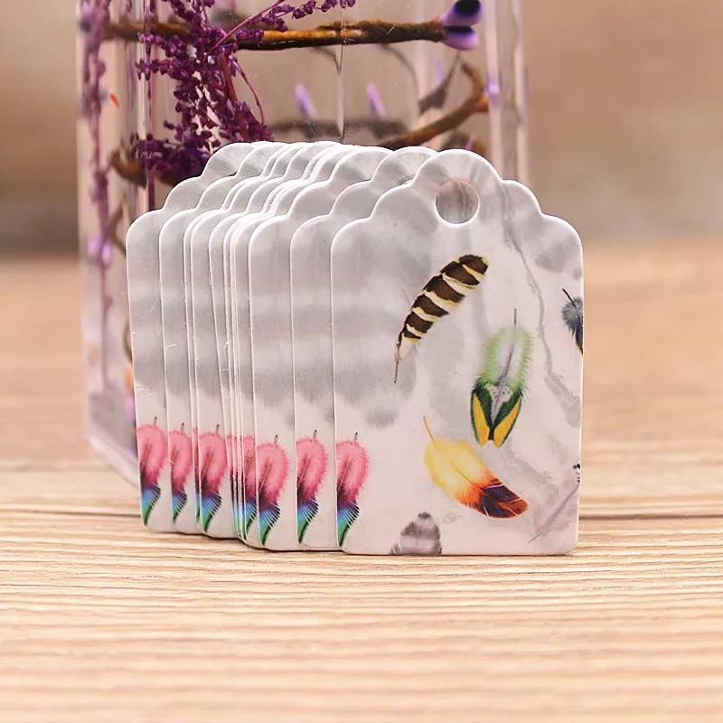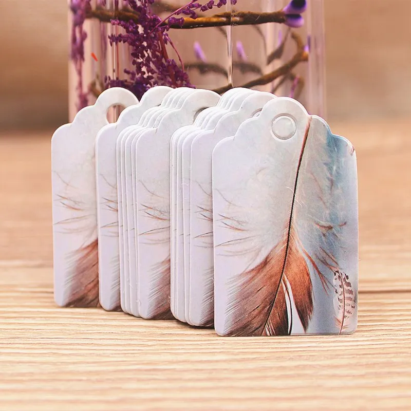Бирка в форме гребешка 5x3 см 100, белая бирка для свадебных конфет, подарочные бирки с узором из перьев, украшение для вечерние