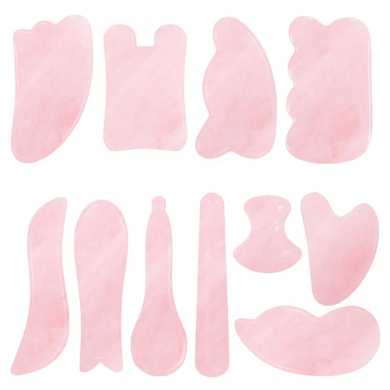 Скребок гуаша, инструменты для Массажа Гуаша из 100% натурального розового кварца, китайский традиционный спа-массаж лица, акупунктура, скребок гуаша