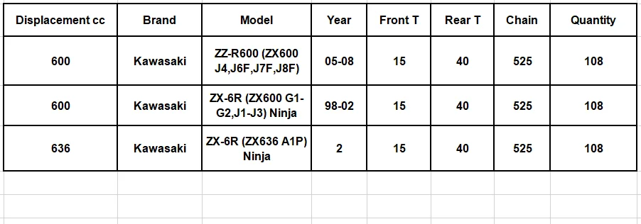 Мотоцикл 525 цепь передние и задние звездочки Набор для Kawasaki ZZ-R600 ZX600 ZZR600 05-08 ZX-6R ZX6R ZX600G ZX636 Ninja 98-02