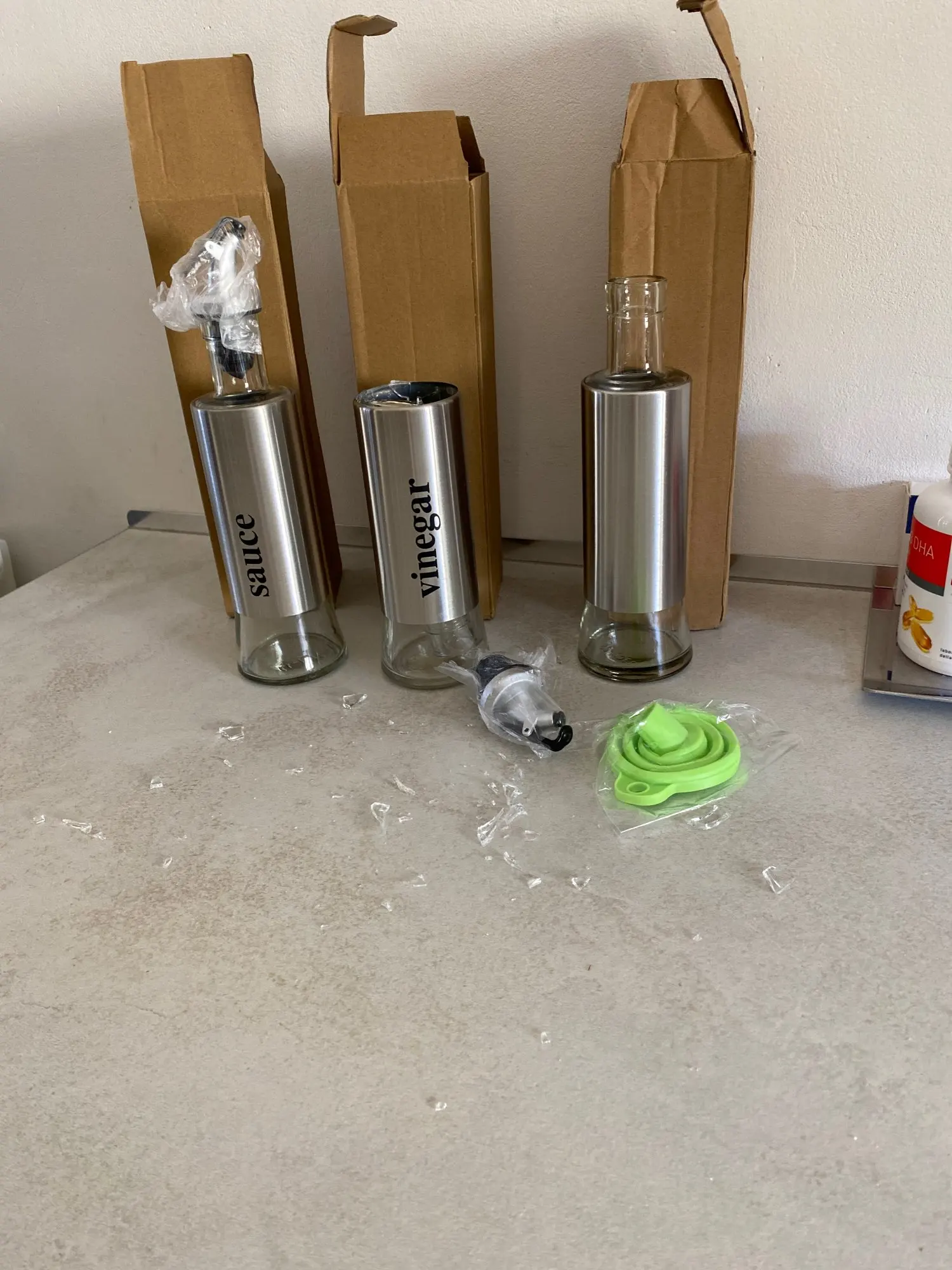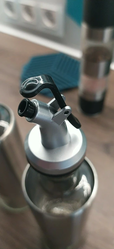Очень полезно... Он не проливает ни масла, ни уксуса... Очень мило... С нержавеющей стали... Я в восторге.