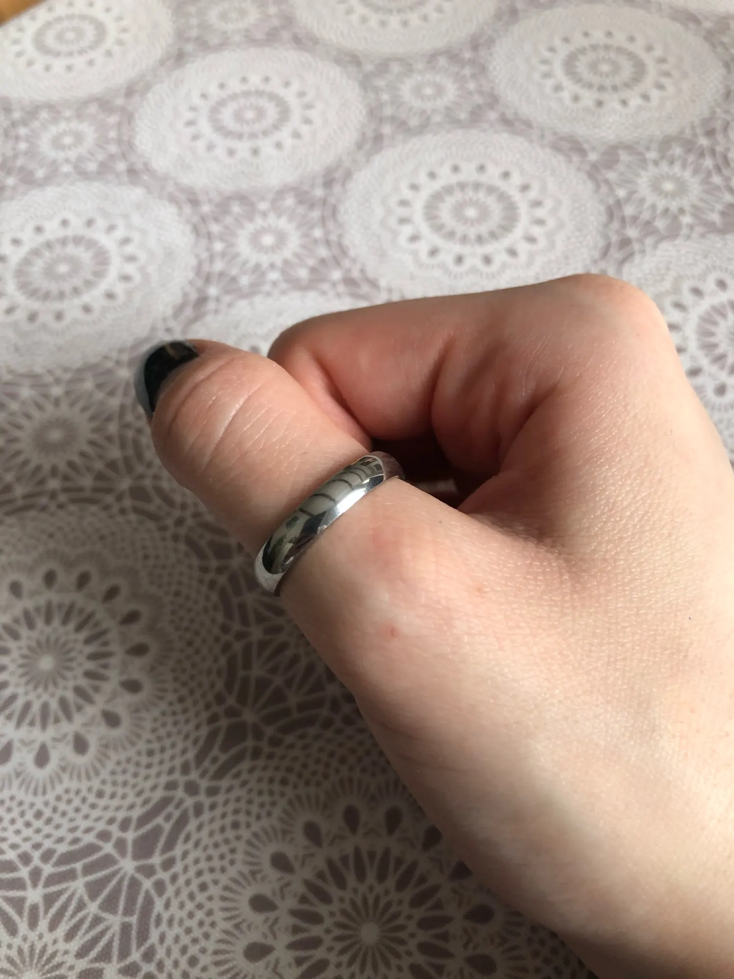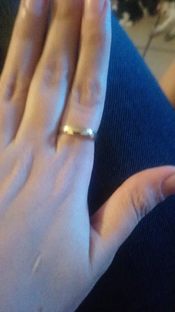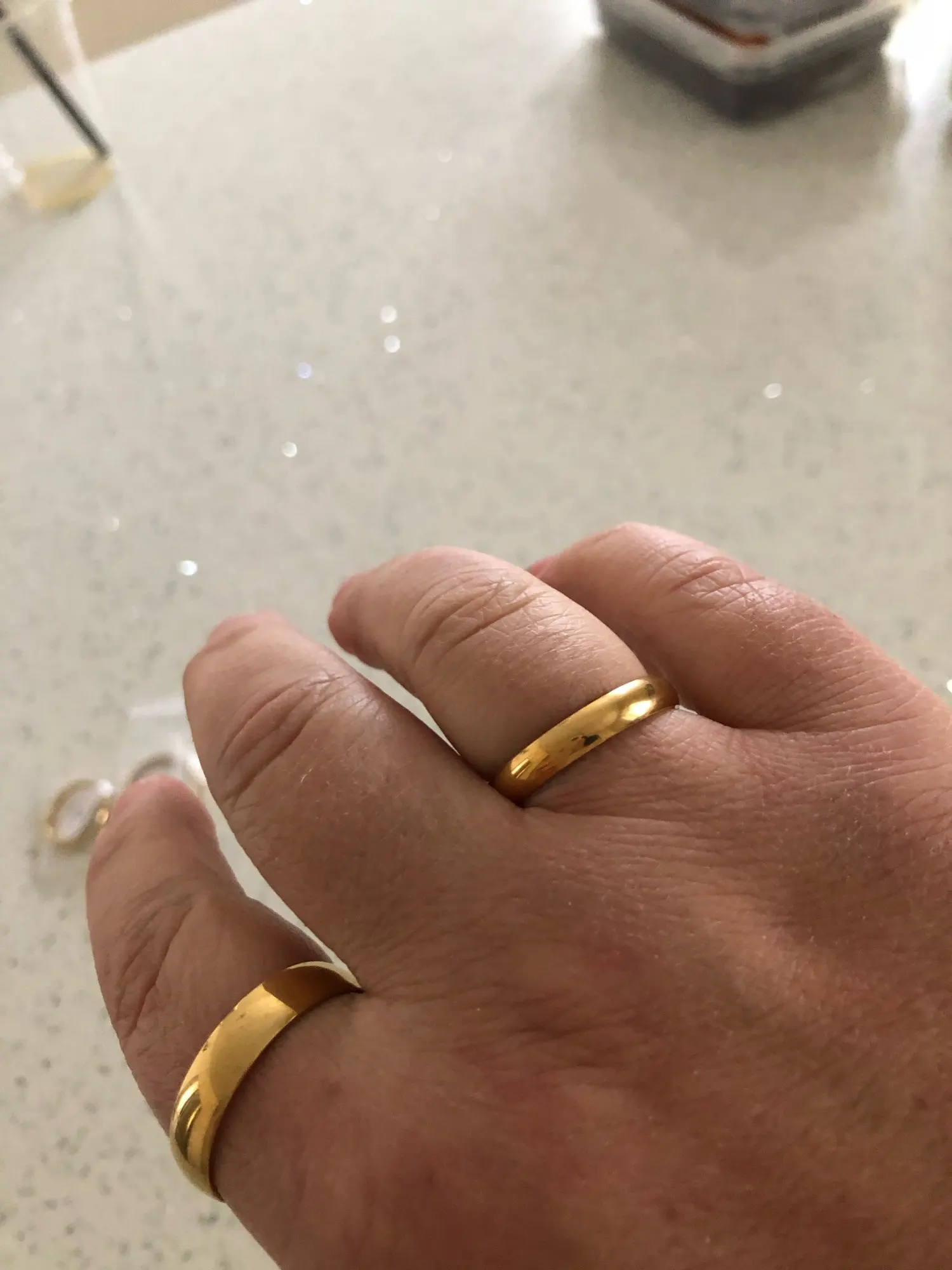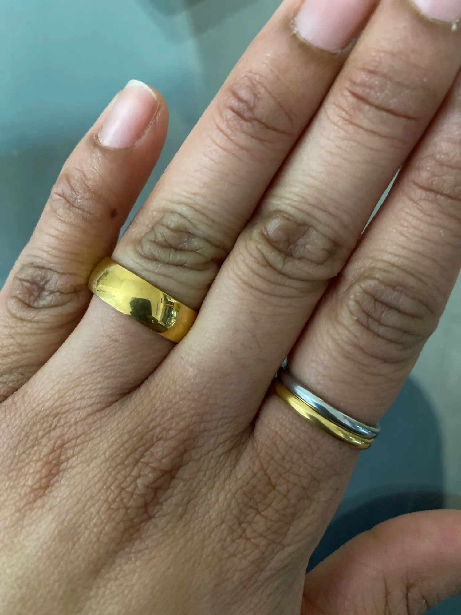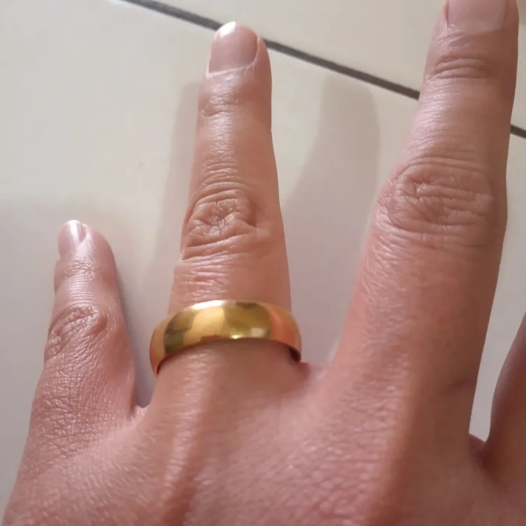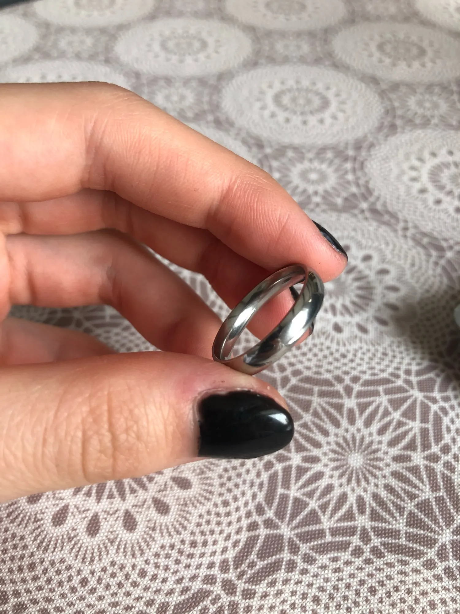 Один из 2 колец, которые я заказал, очень понравился. Тоньше, блестящий и не тускнеет водой, которая хорошая, но второй был разочарован, так как он был потускнен, когда он пришел. Я получил частичный возврат средств за этот товар.