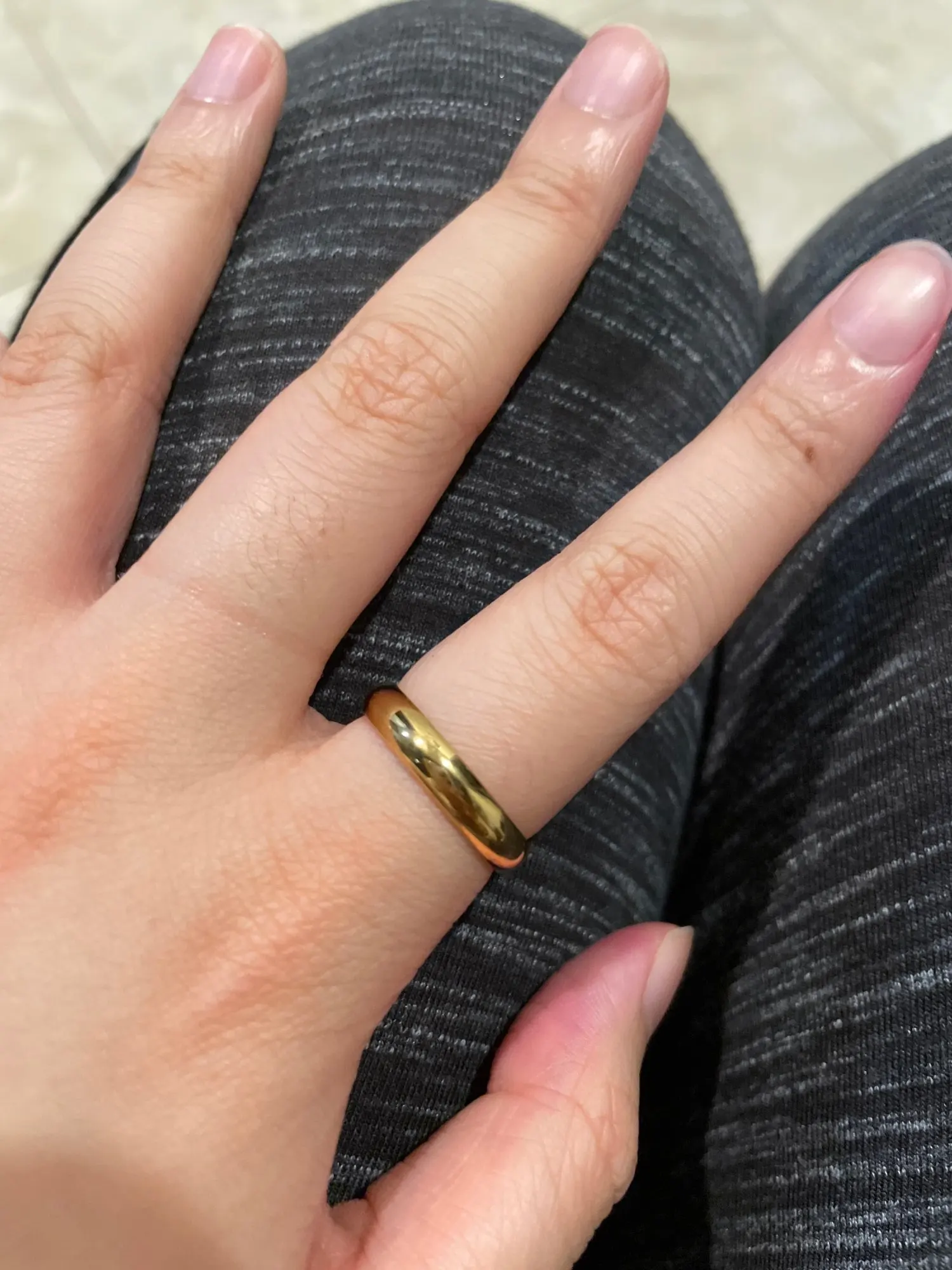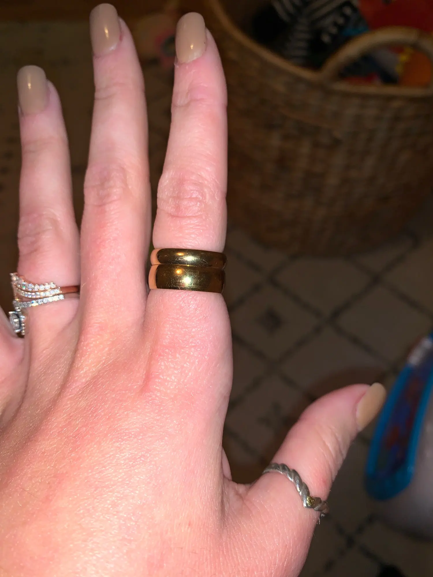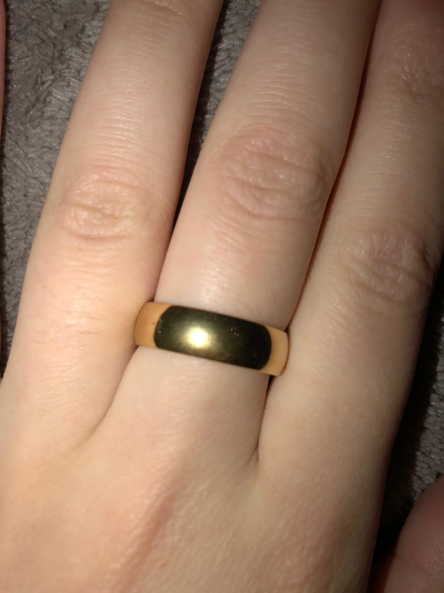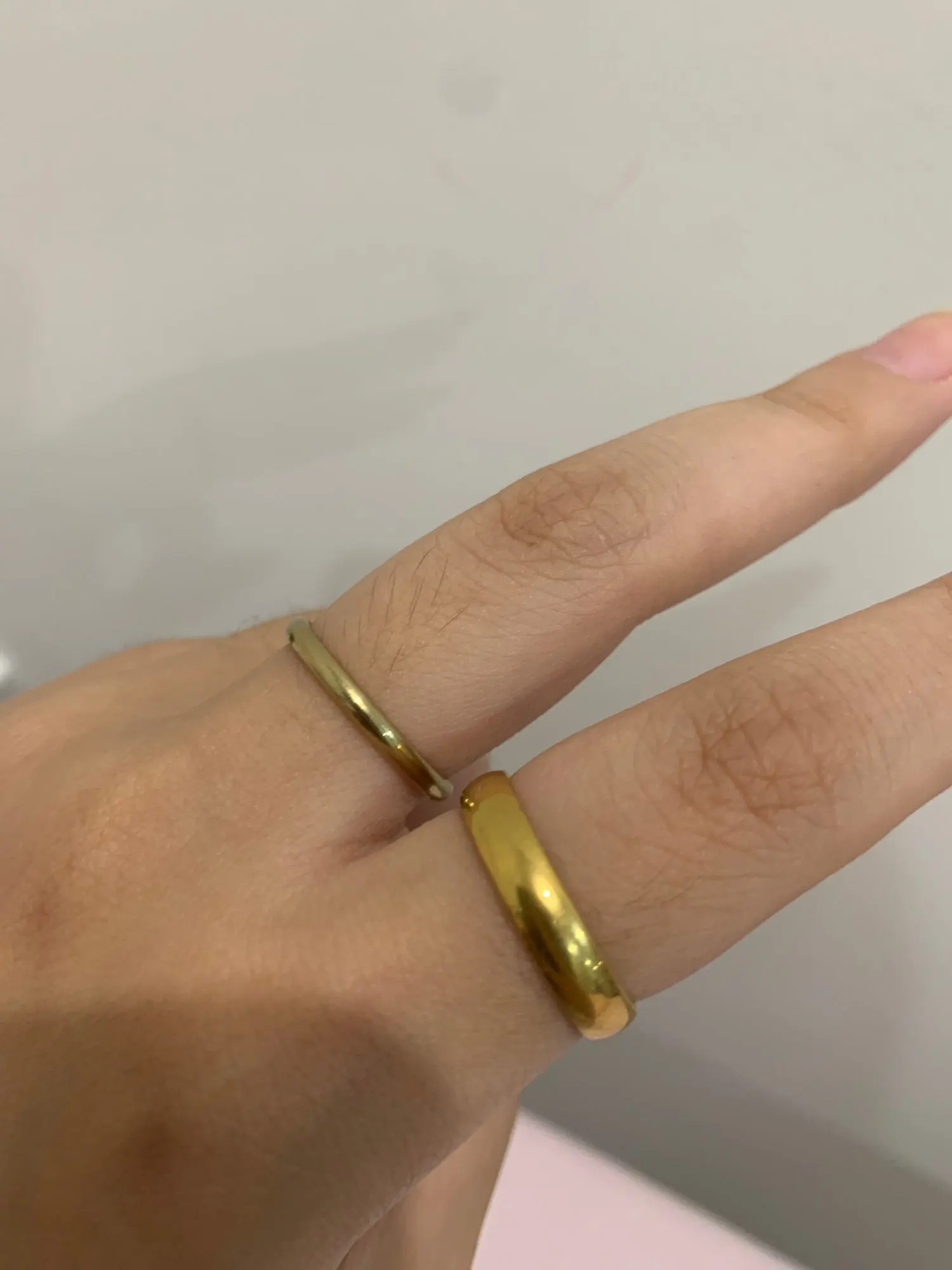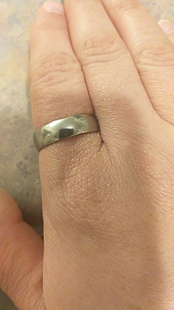 Один из 2 колец, которые я заказал, очень понравился. Тоньше, блестящий и не тускнеет водой, которая хорошая, но второй был разочарован, так как он был потускнен, когда он пришел. Я получил частичный возврат средств за этот товар.